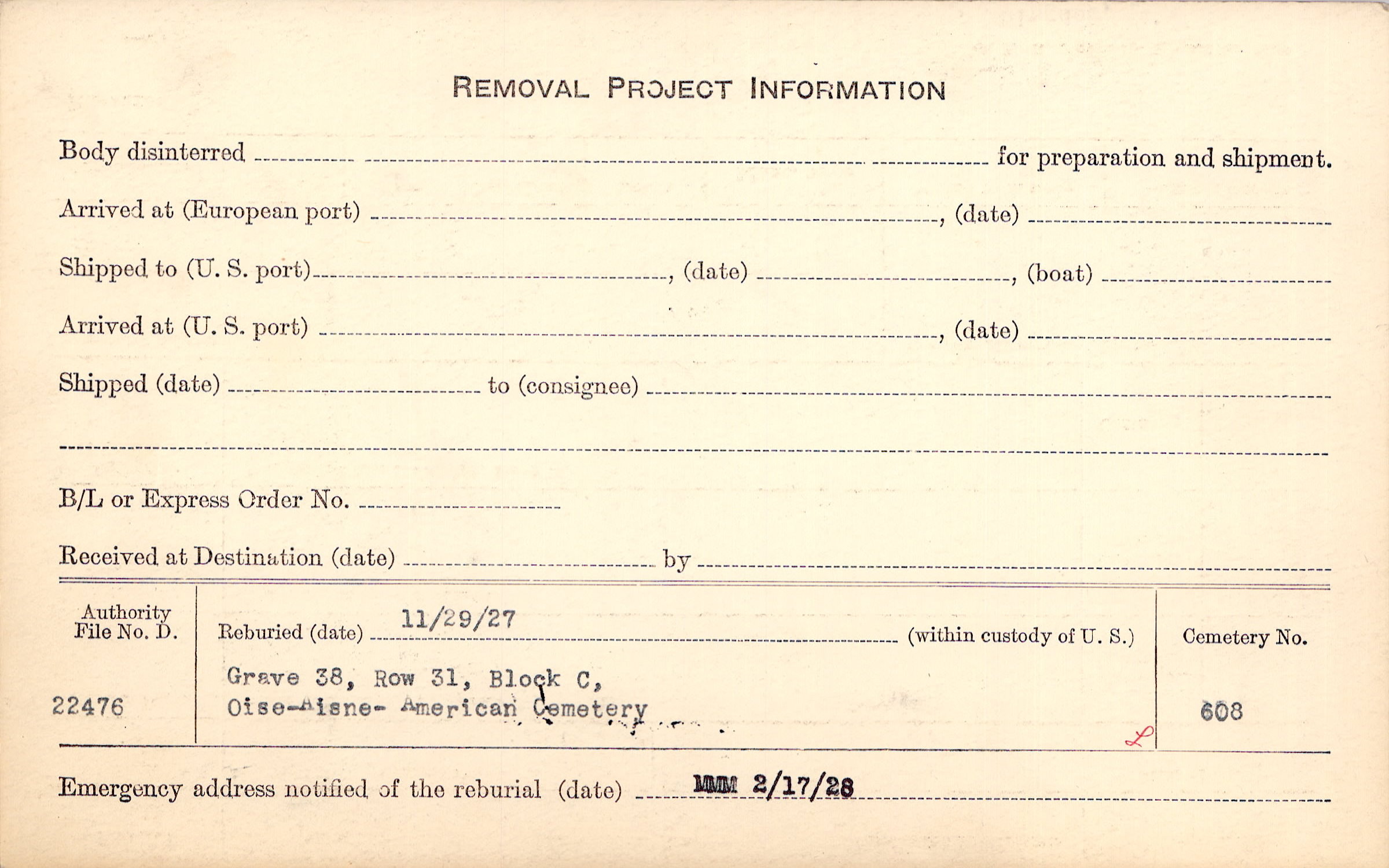 | Permanent Burial in Foreign Cemetery |