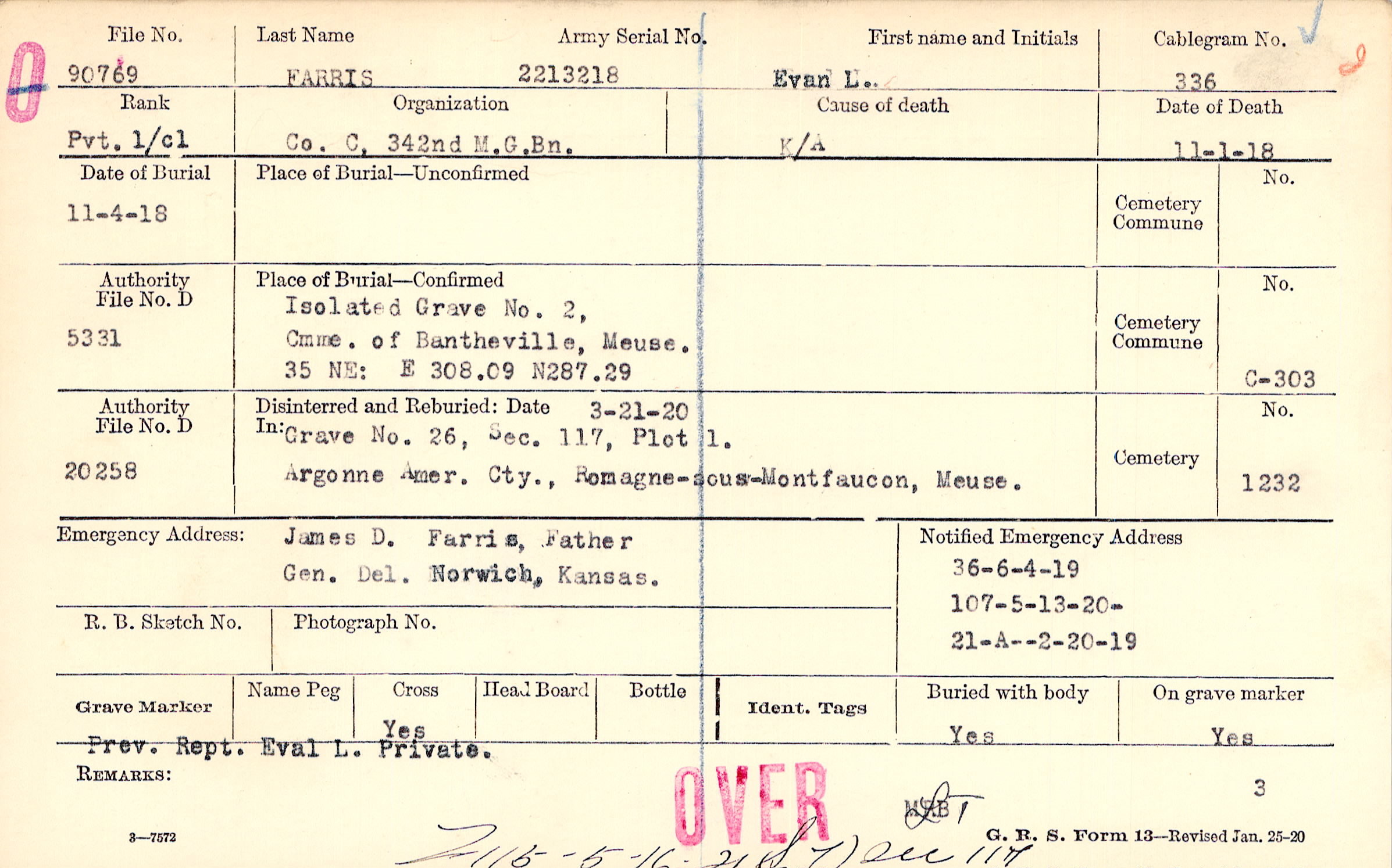 James D. Farris, Father, Gen. Del. Norwich, Kansas.