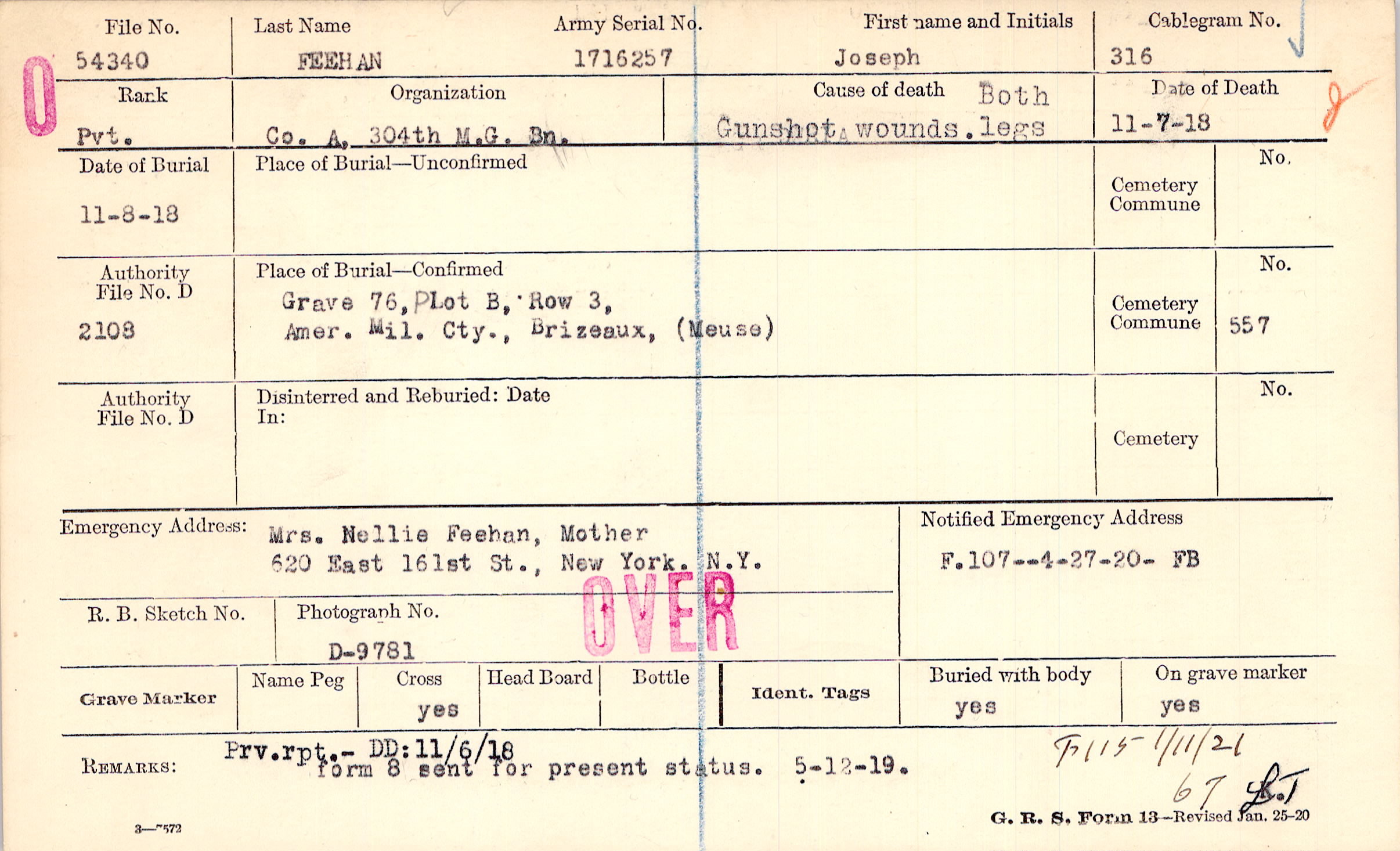 Mrs. Nellie Feehan, Mother, 620 East 161st St., New York, N.Y.