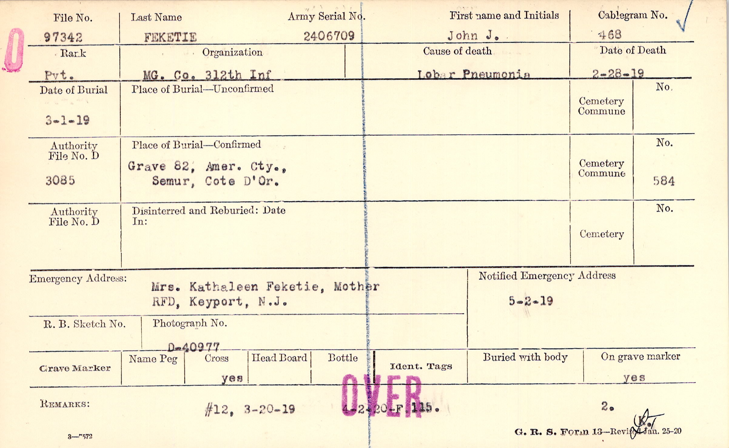 Grave 82, Amer. Cty., Semur, Cote D'Or.