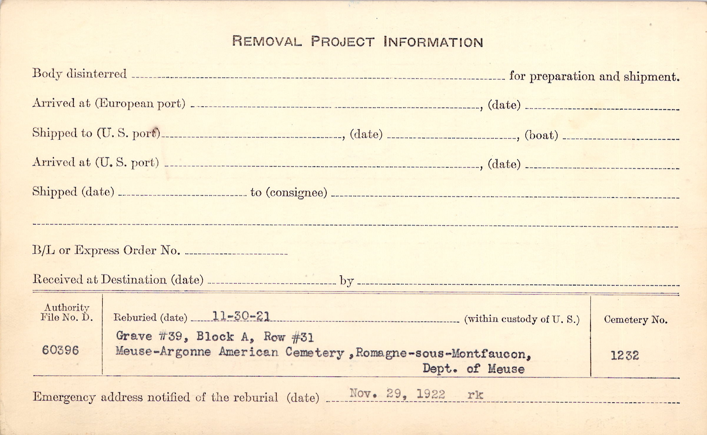 | Permanent Burial in Foreign Cemetery |