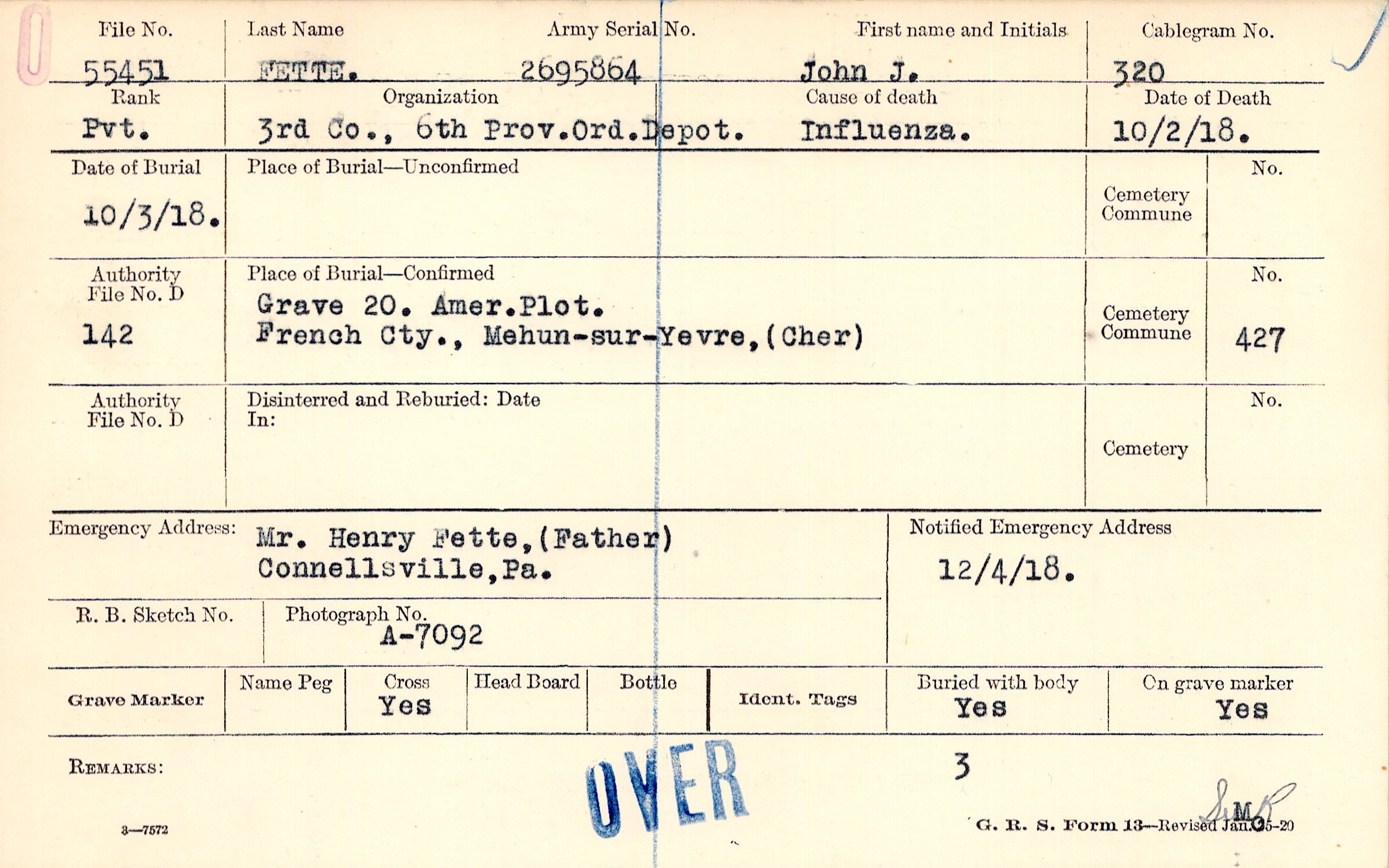 Grave 20, Amer. Plot, French Cty., Mehun-sur-Yevre, Cher