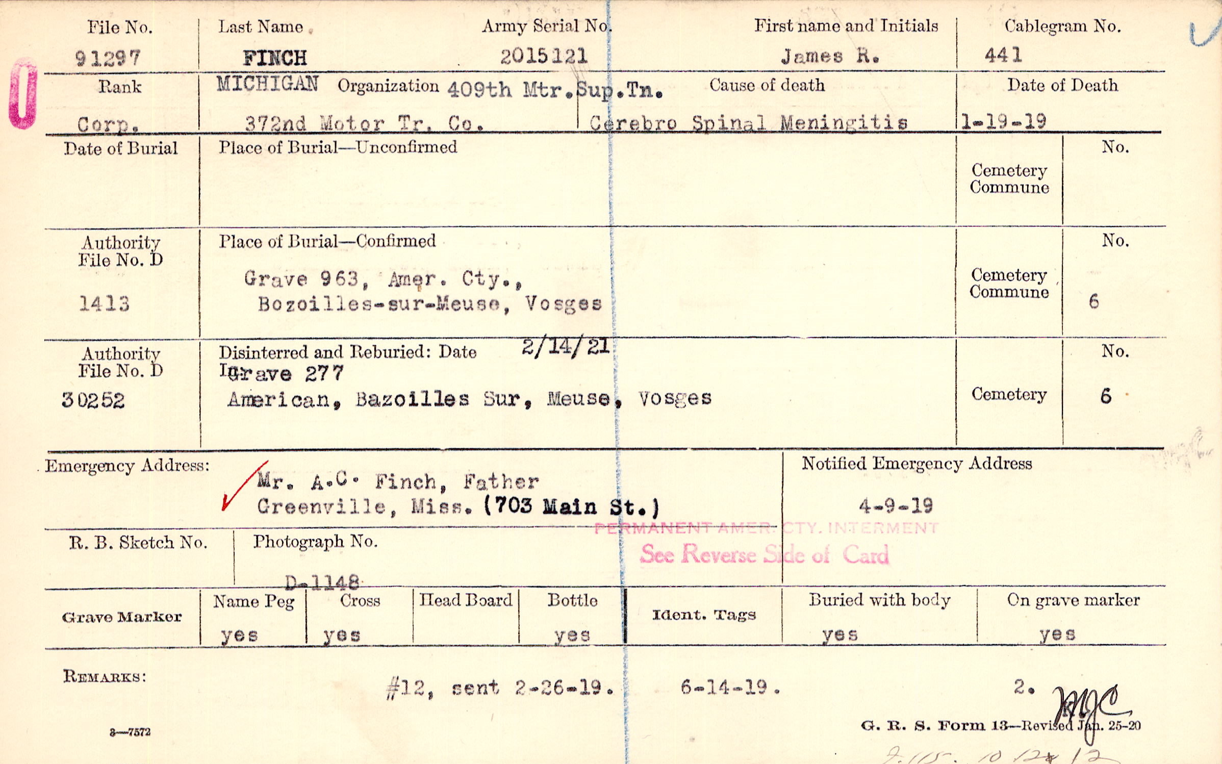 | Reburied (date): |