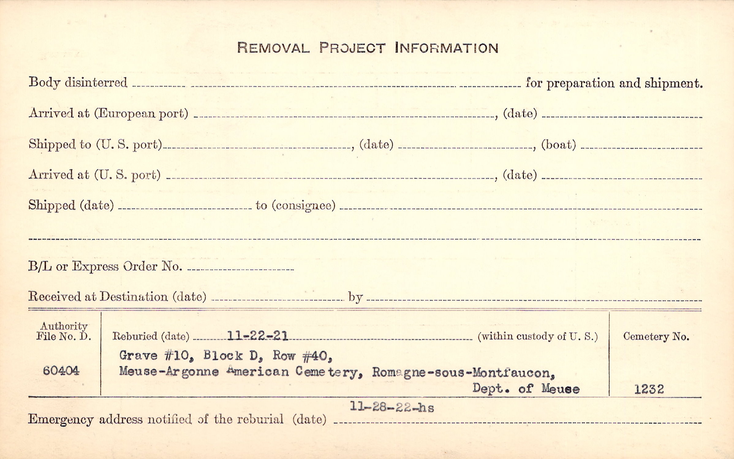 | Permanent Burial in Foreign Cemetery |