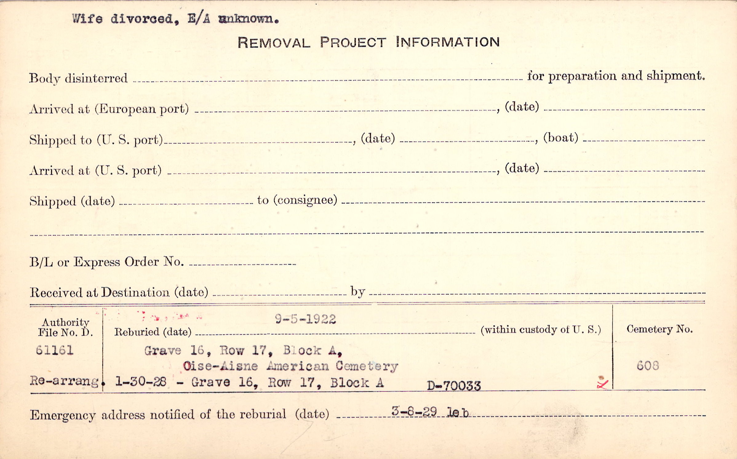 Prior Burial in Foreign Cemetery |