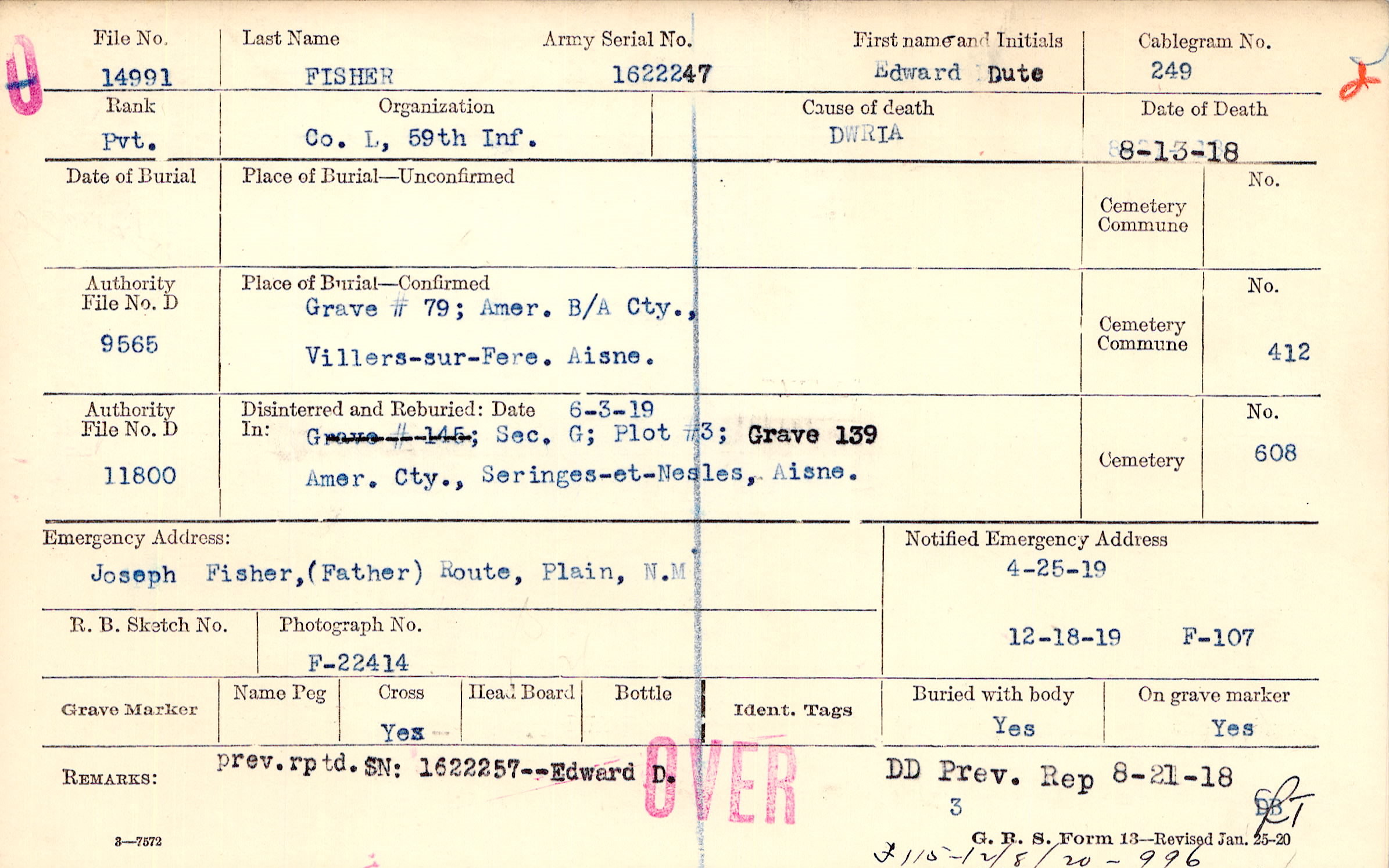 prev. reptd. SN: 1622257 - Edward D. DD Prev. Rep 8-21-18, F115 - 12/8/20 - 996