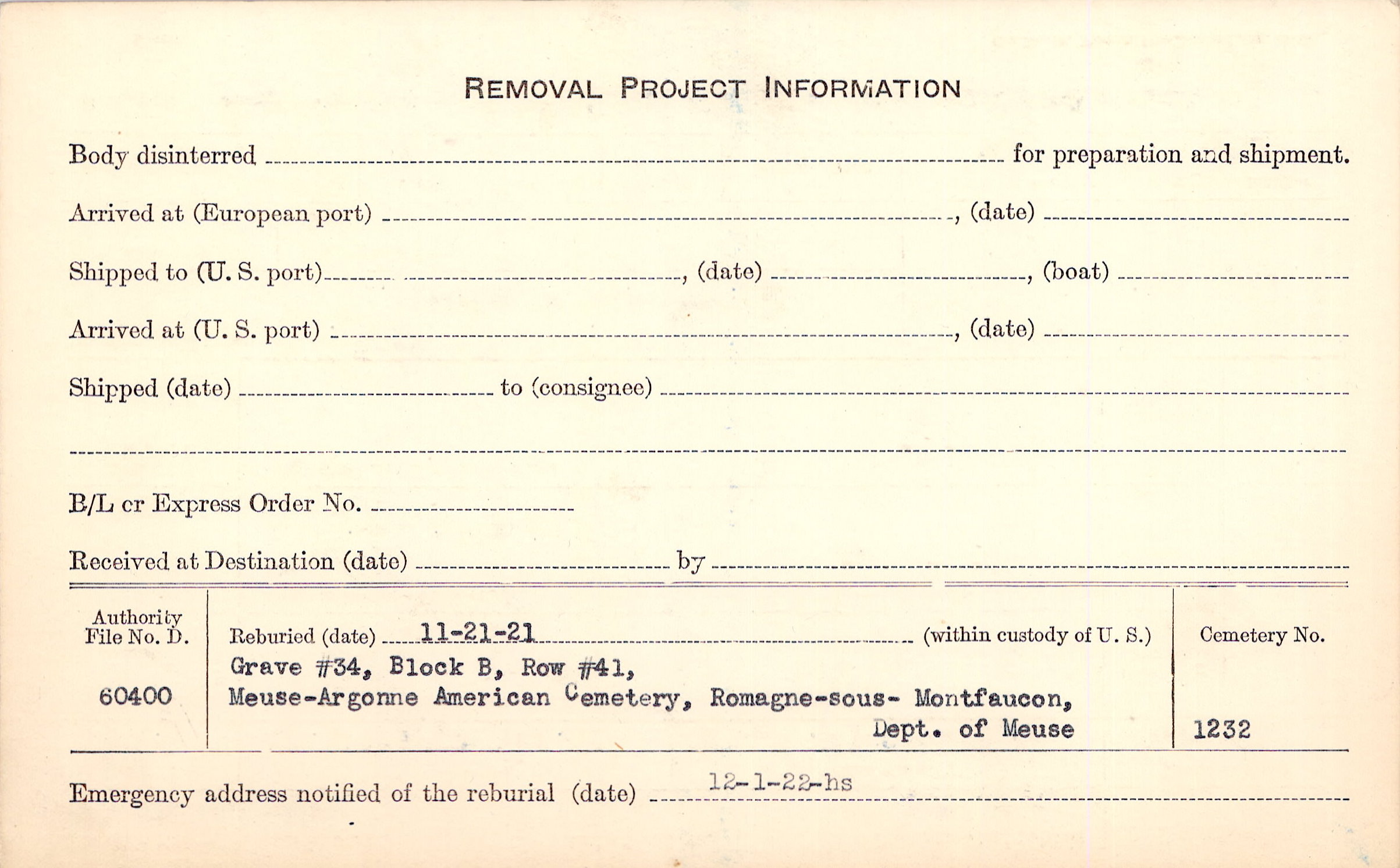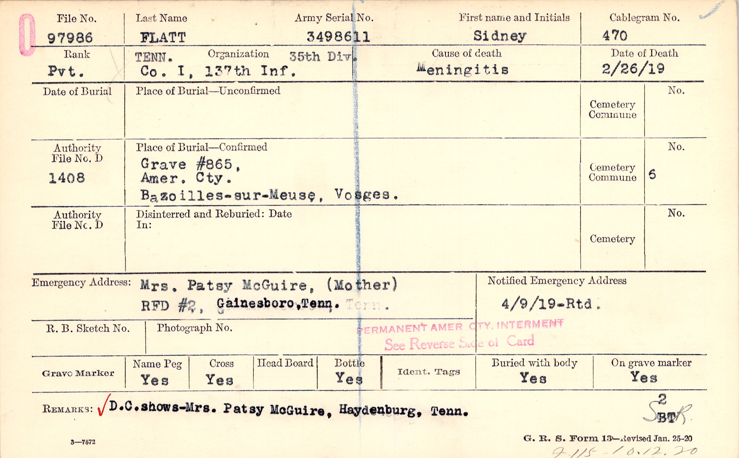 Grave #865, Amer. Cty., Bazoilles-sur-Meuse, Vosges.