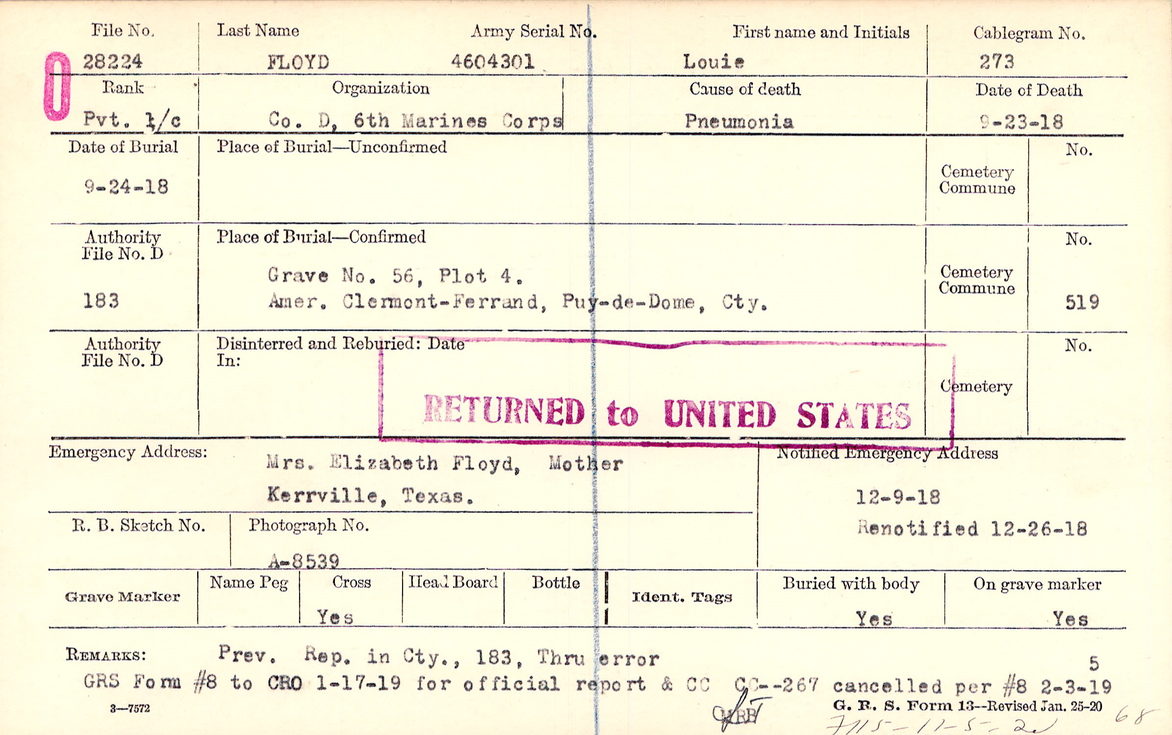 Grave 56, Plot 4, Amer., clermont-Ferrand, Puy-de-Dome, Cty
