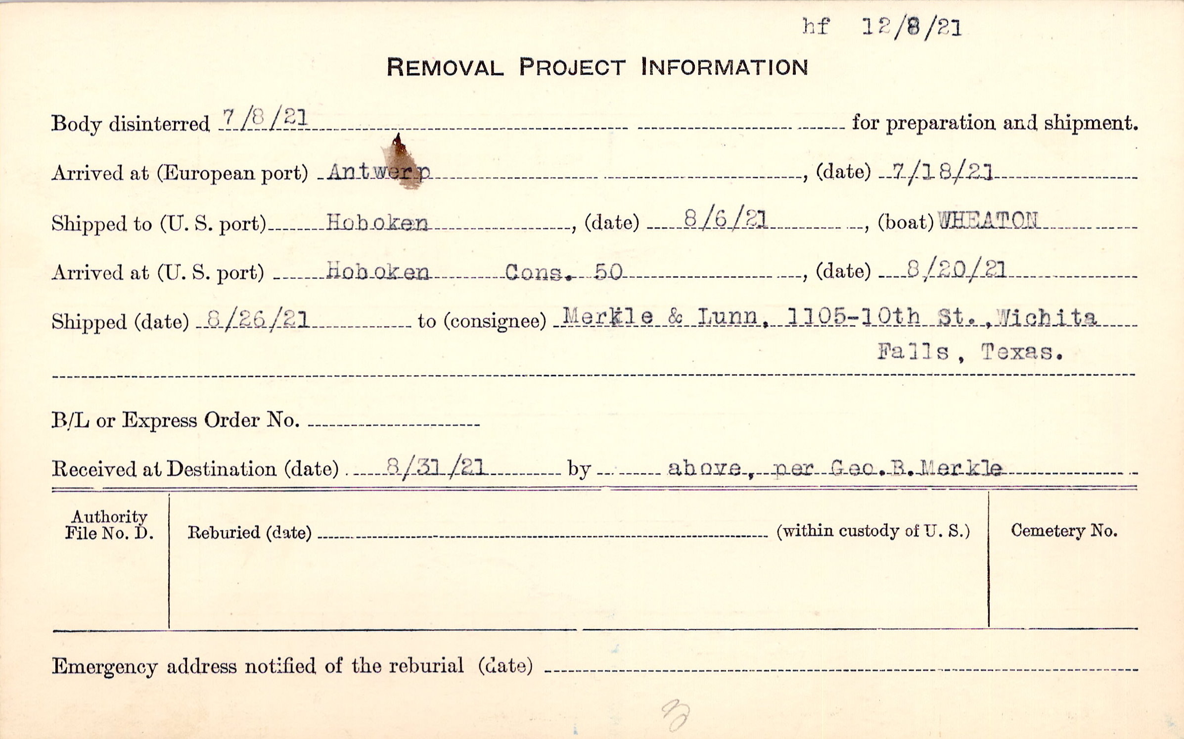 Renotified 7/2/1920Ret 7/2/1920, Form 107: /6/19320, 6/2/1920