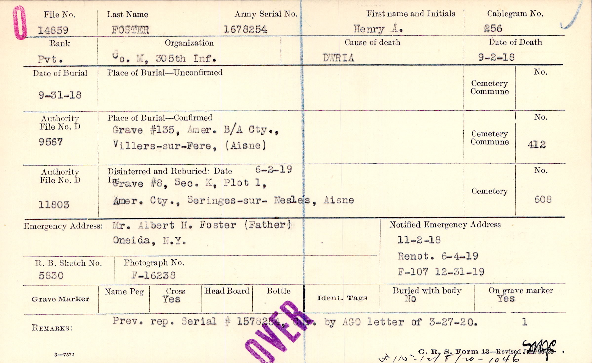 Grave #135, Amer. B/A Cty., Villers-sur-Fere, Aisne