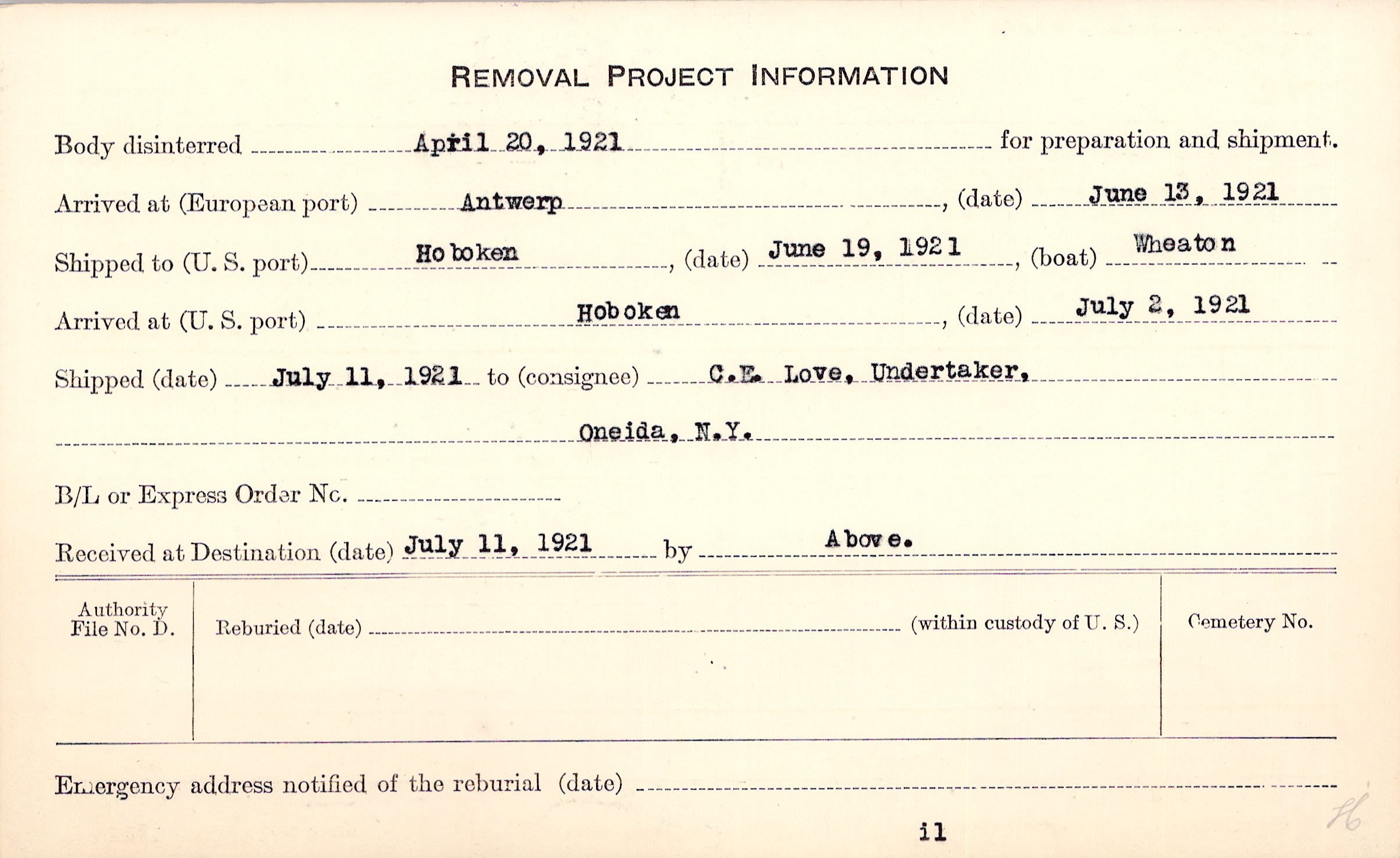 to C. E. Love, Undertaker, Oneida, N.Y.