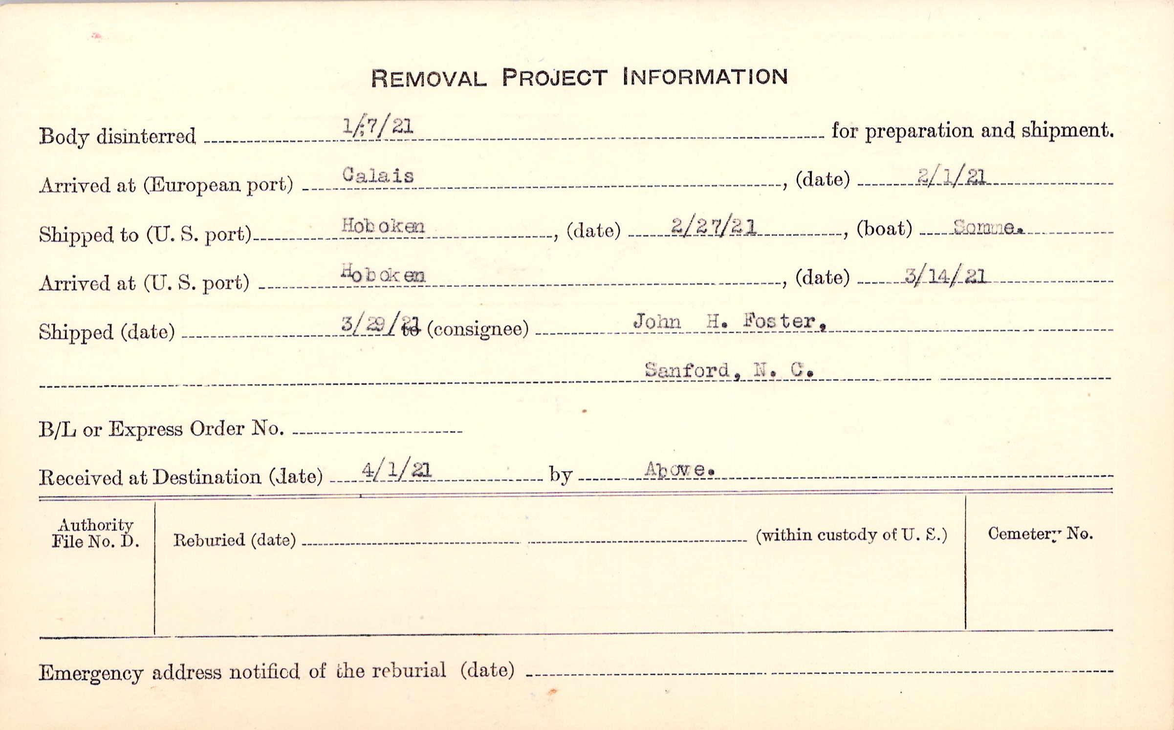 Marshall B. Foster, Father, RFD #1, Sanford, North Carolina
