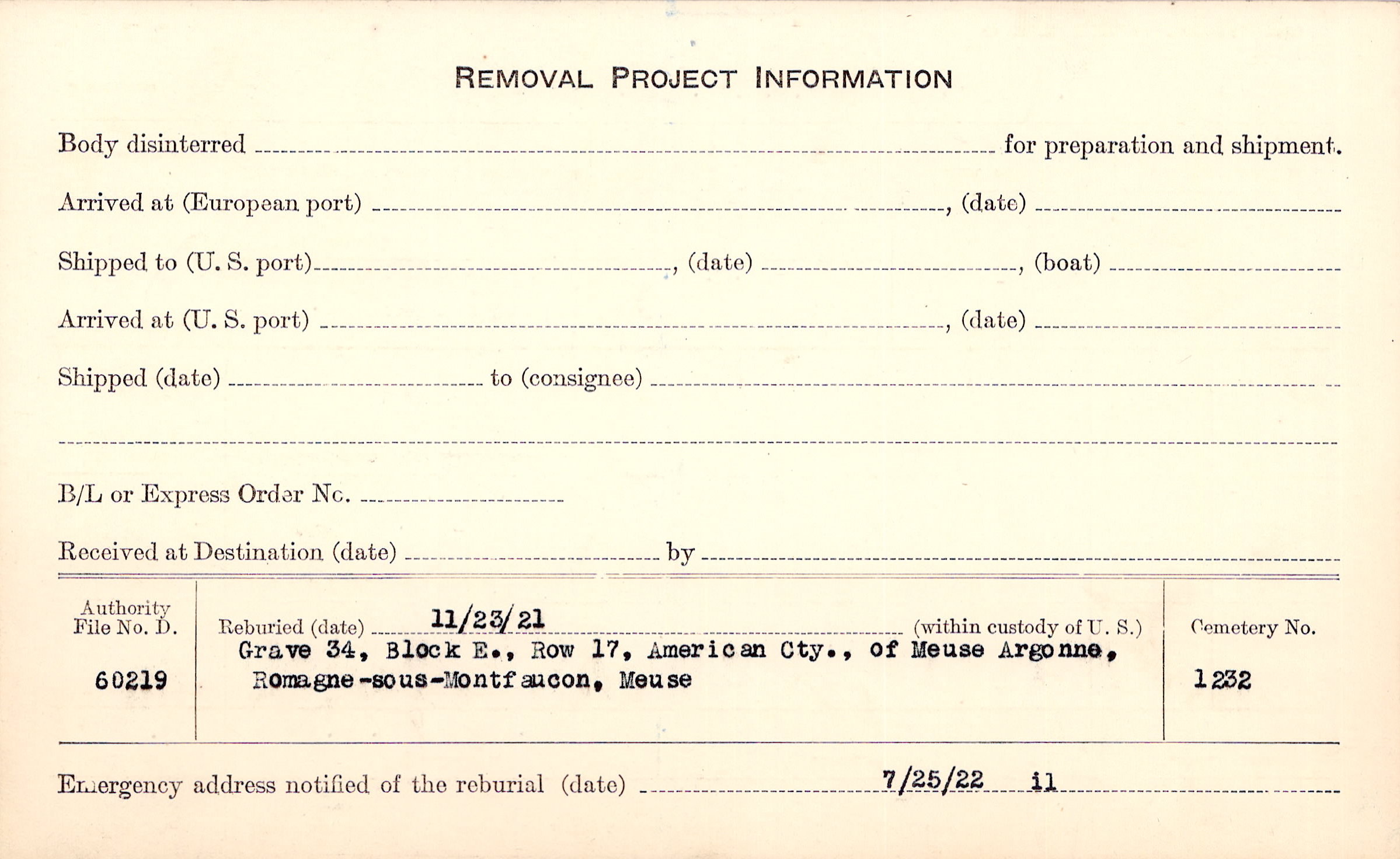 | Permanent Burial in Foreign Cemetery |
