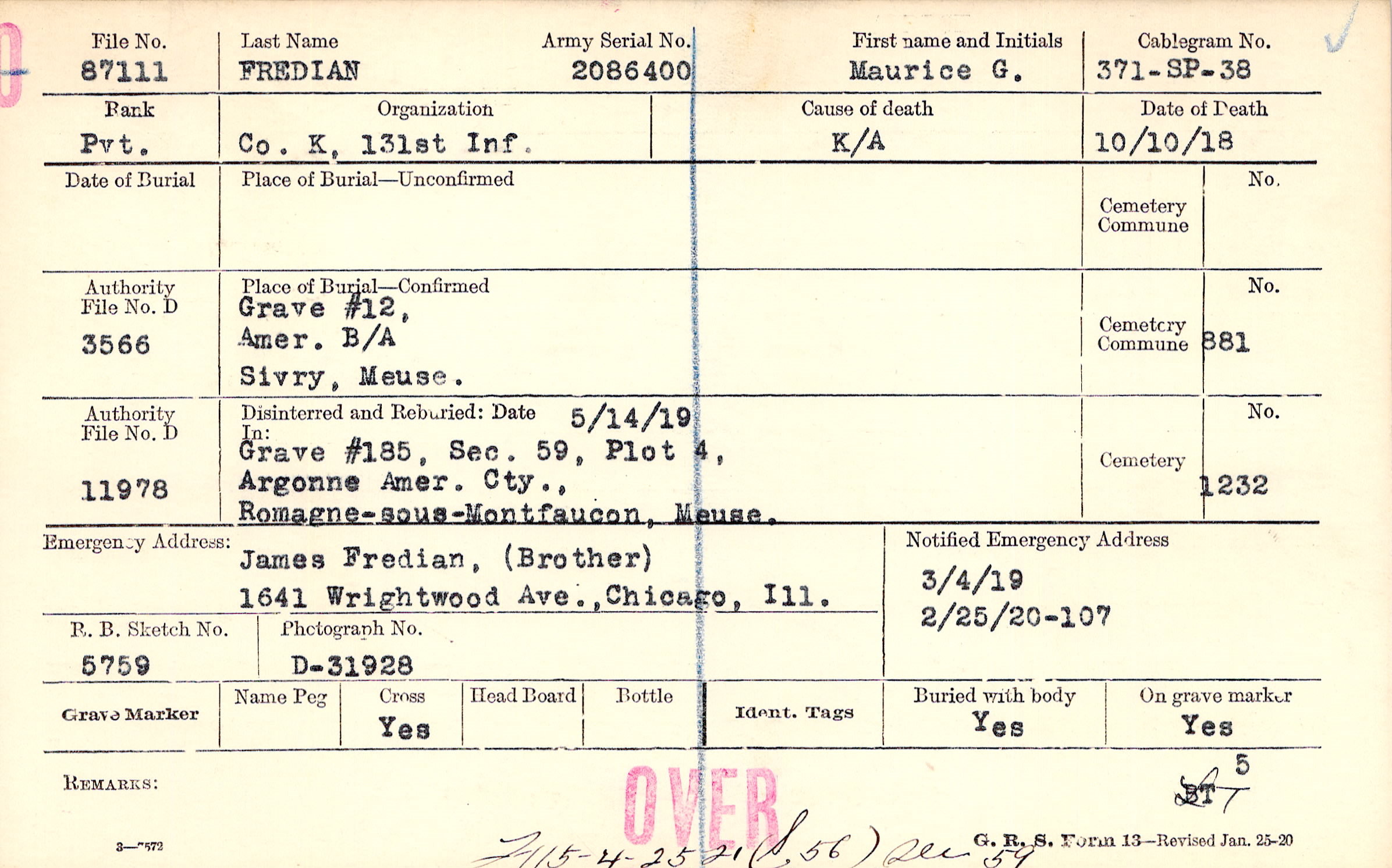 Grave #12, Amer. B/A, Sivry, Meuse.