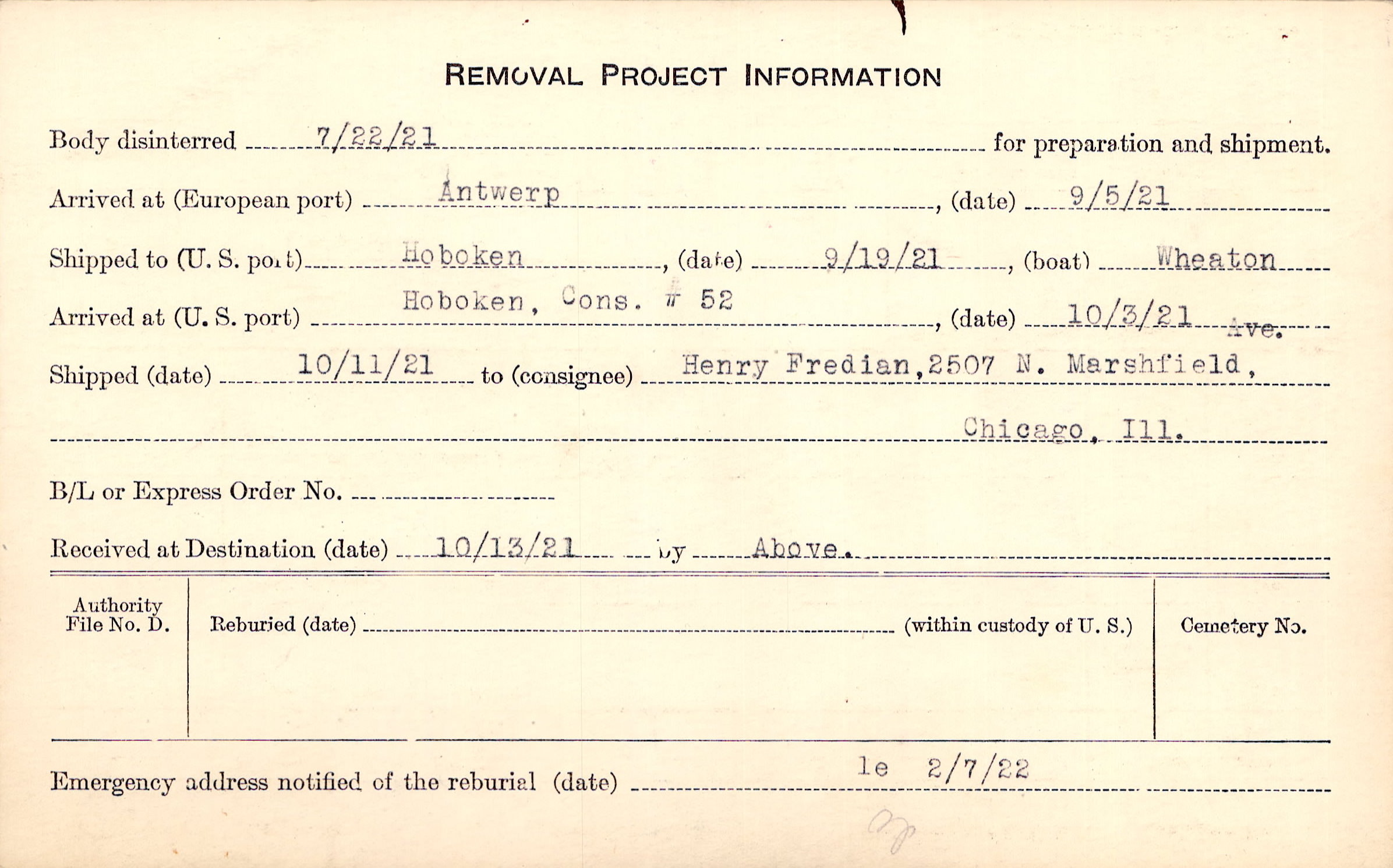 to Henry Fredian, 2507 N. Marshfield, Chichago, Ill.