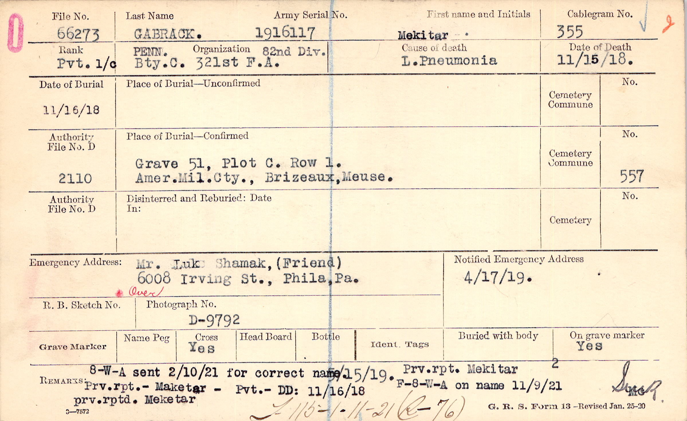 Army Serial No. |