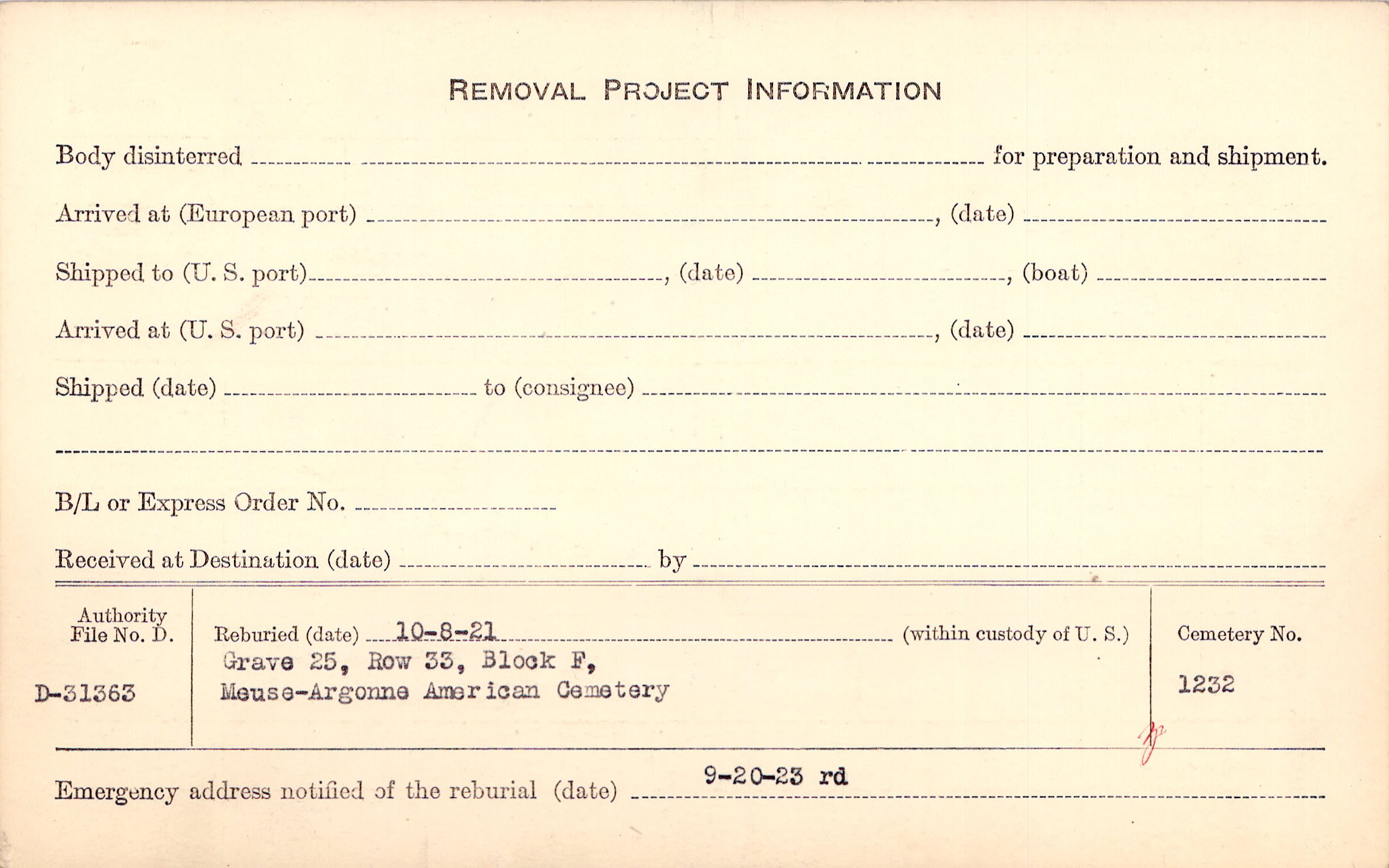 | Permanent Burial in Foreign Cemetery |