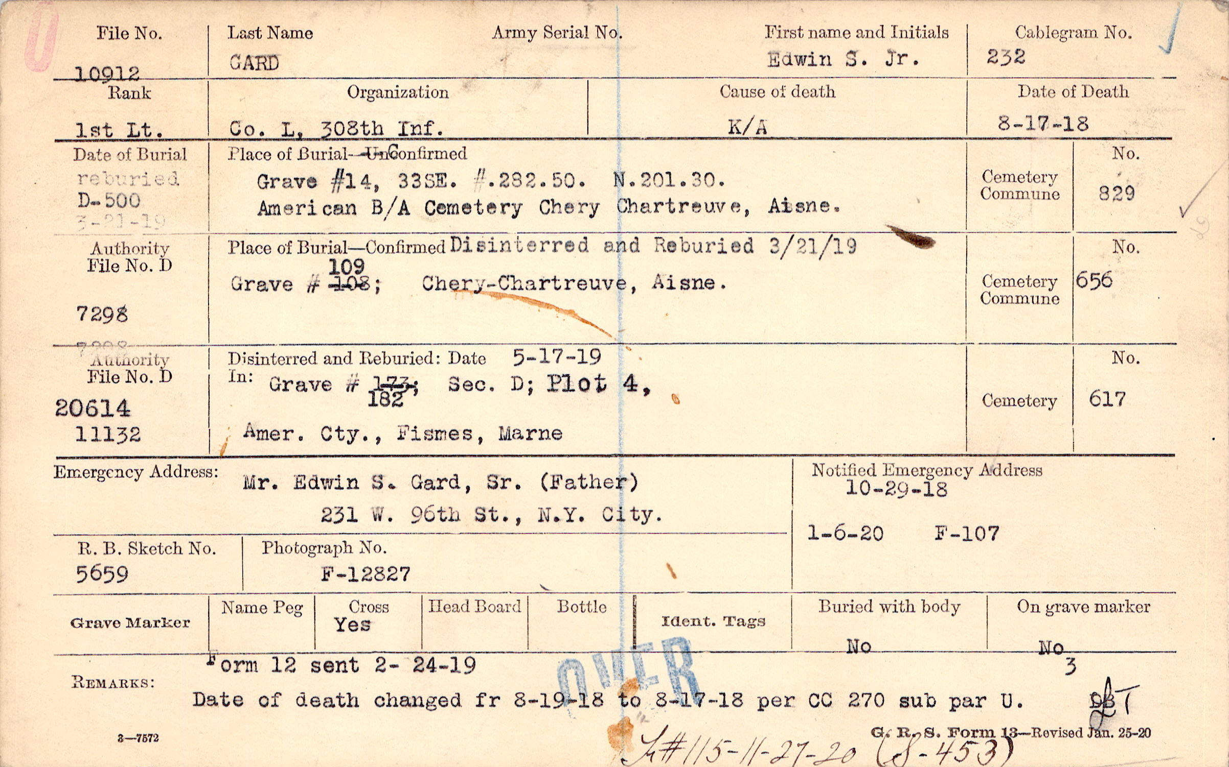 Mr. Edwin S. Gard, Sr. (Father), 231 W. 96th St., N.Y. City.