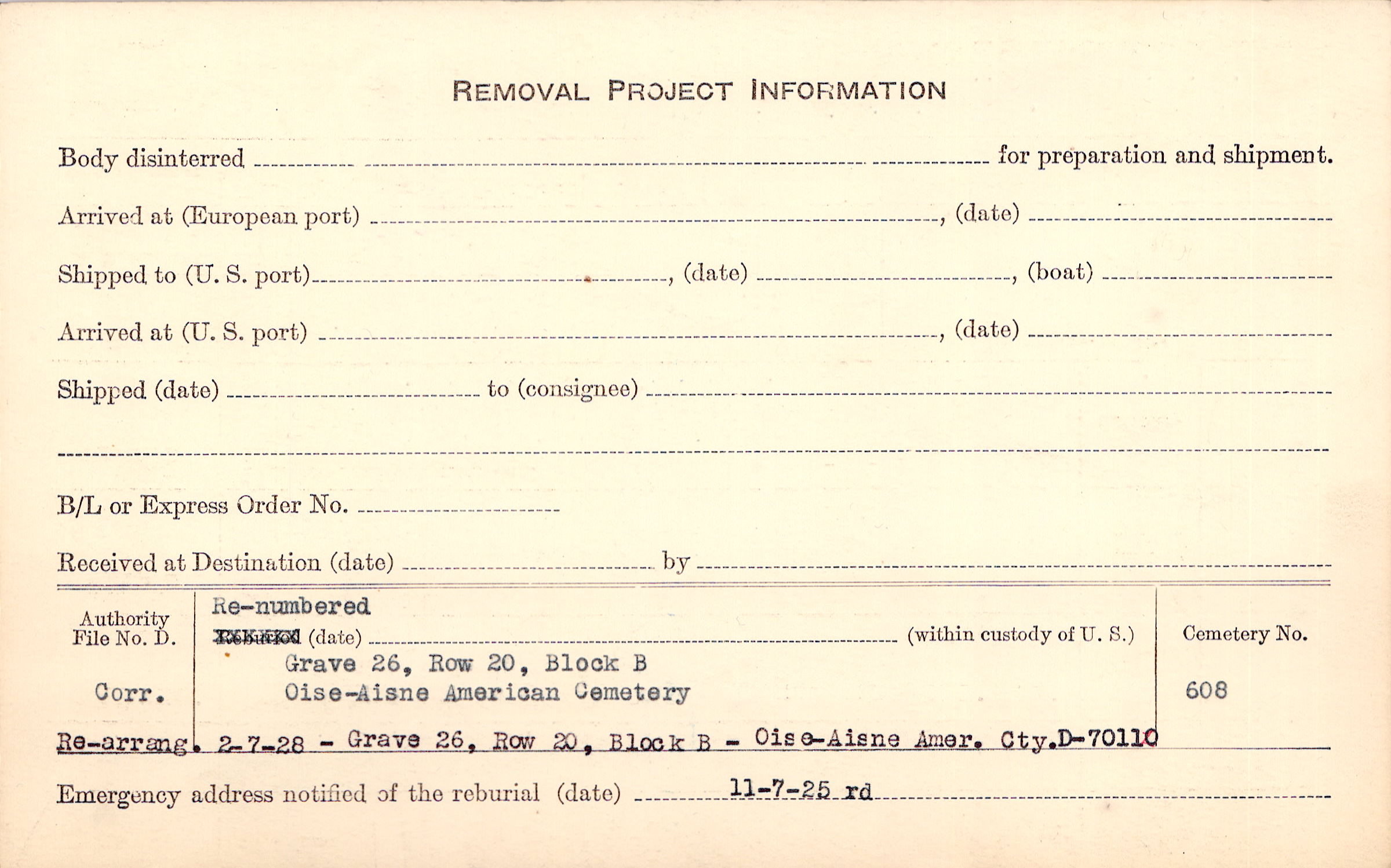 Prior Burial in Foreign Cemetery |