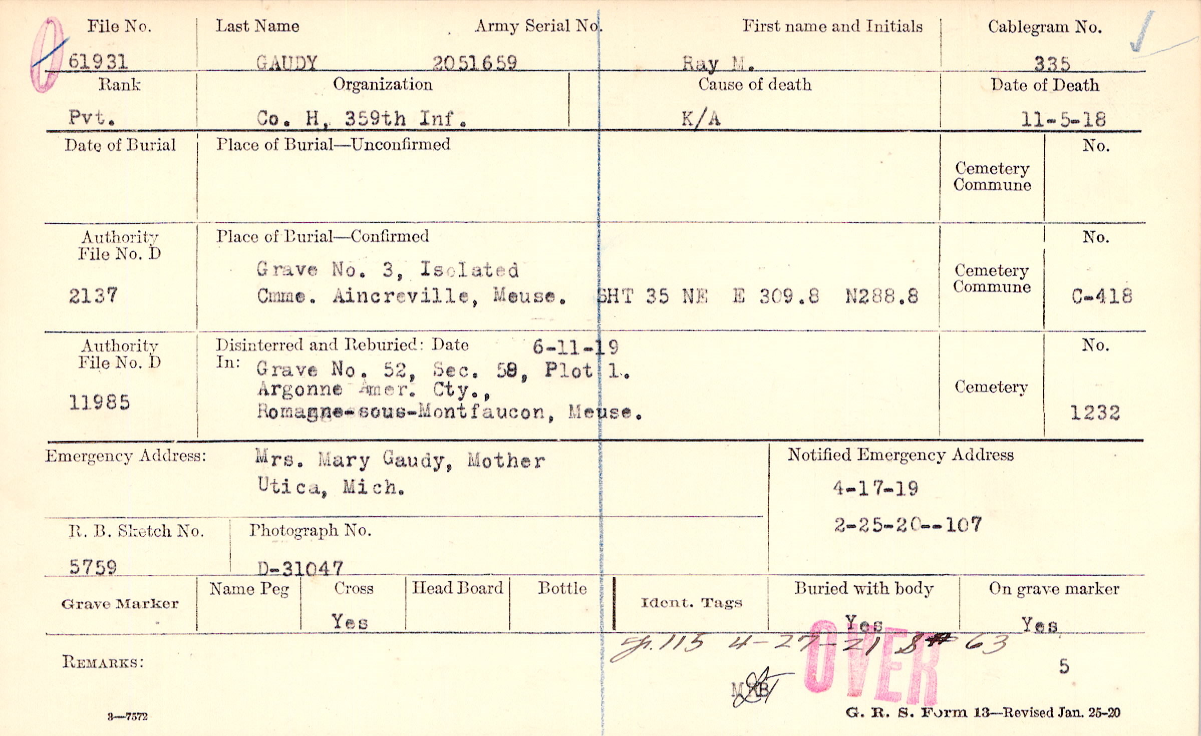 Grave 3, Isolated, Cmme. Aincreville, Meuse., SHT 35 NE