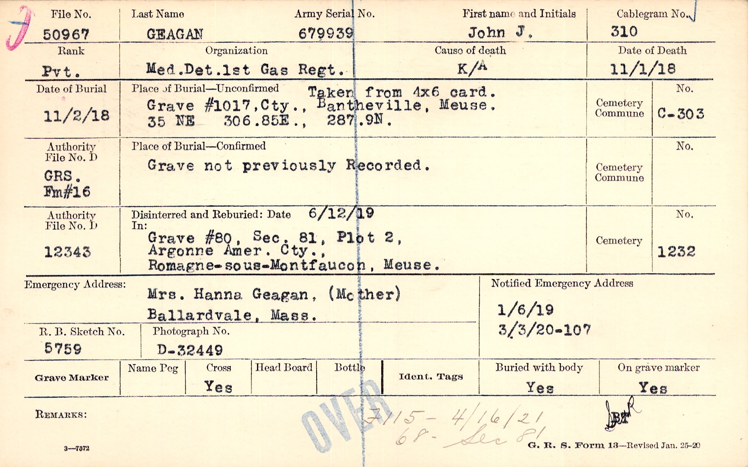 Grave #1017, Cty., Bantheville, Meuse, 35 NE