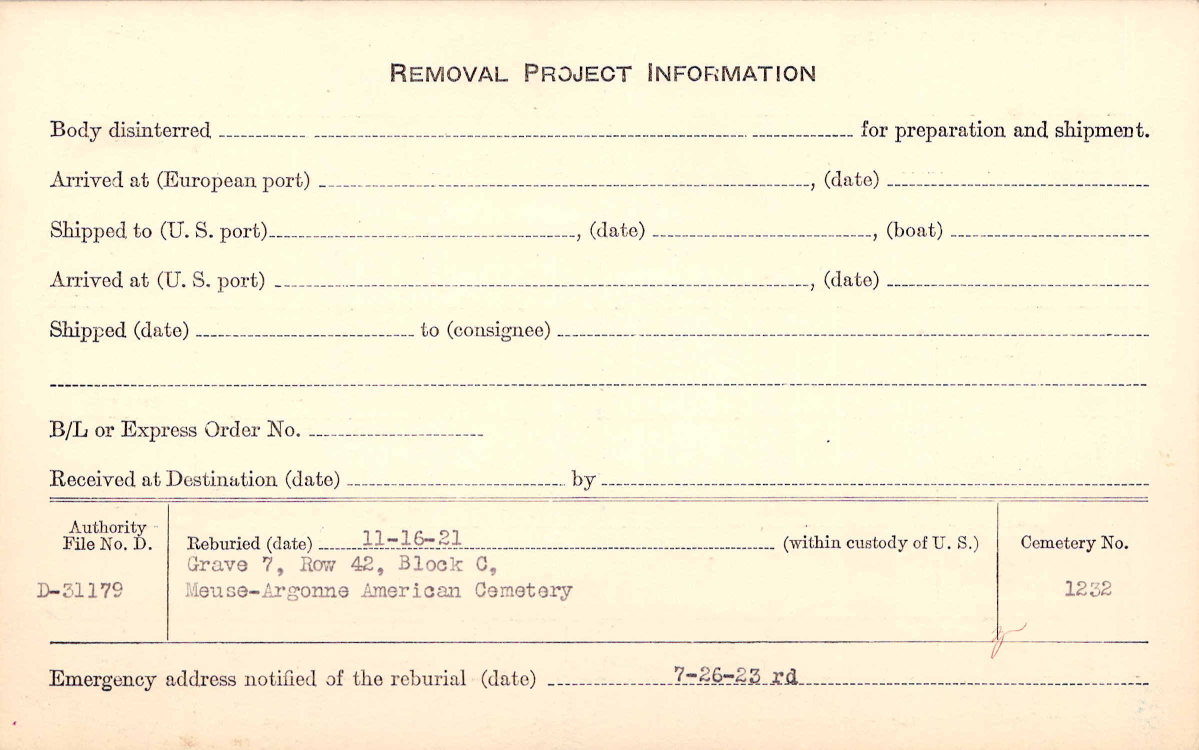 | Permanent Burial in Foreign Cemetery |