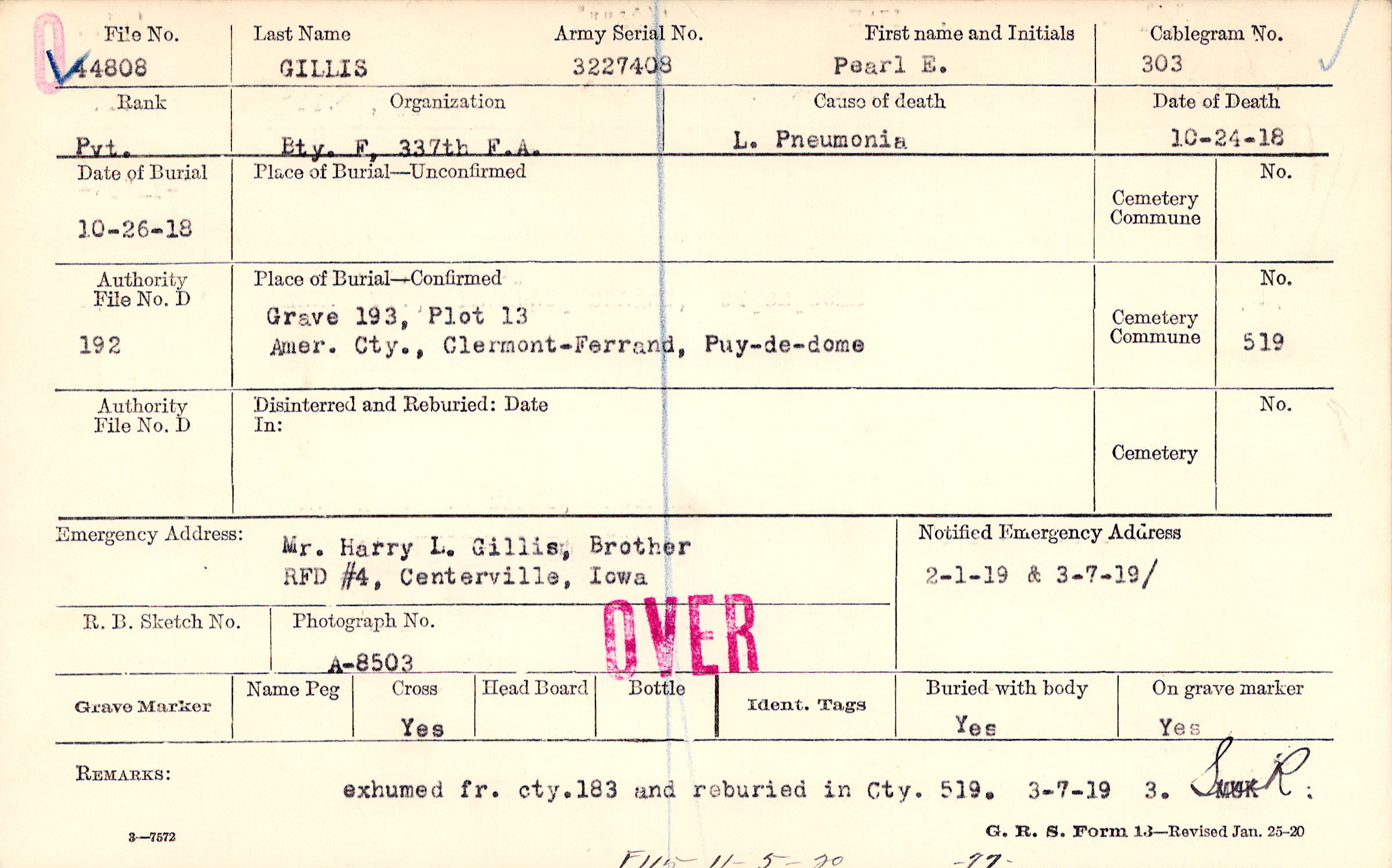 Grave 193, Plot 13, Amer. Cty., Clermont-Ferrand, Puy-de-dome