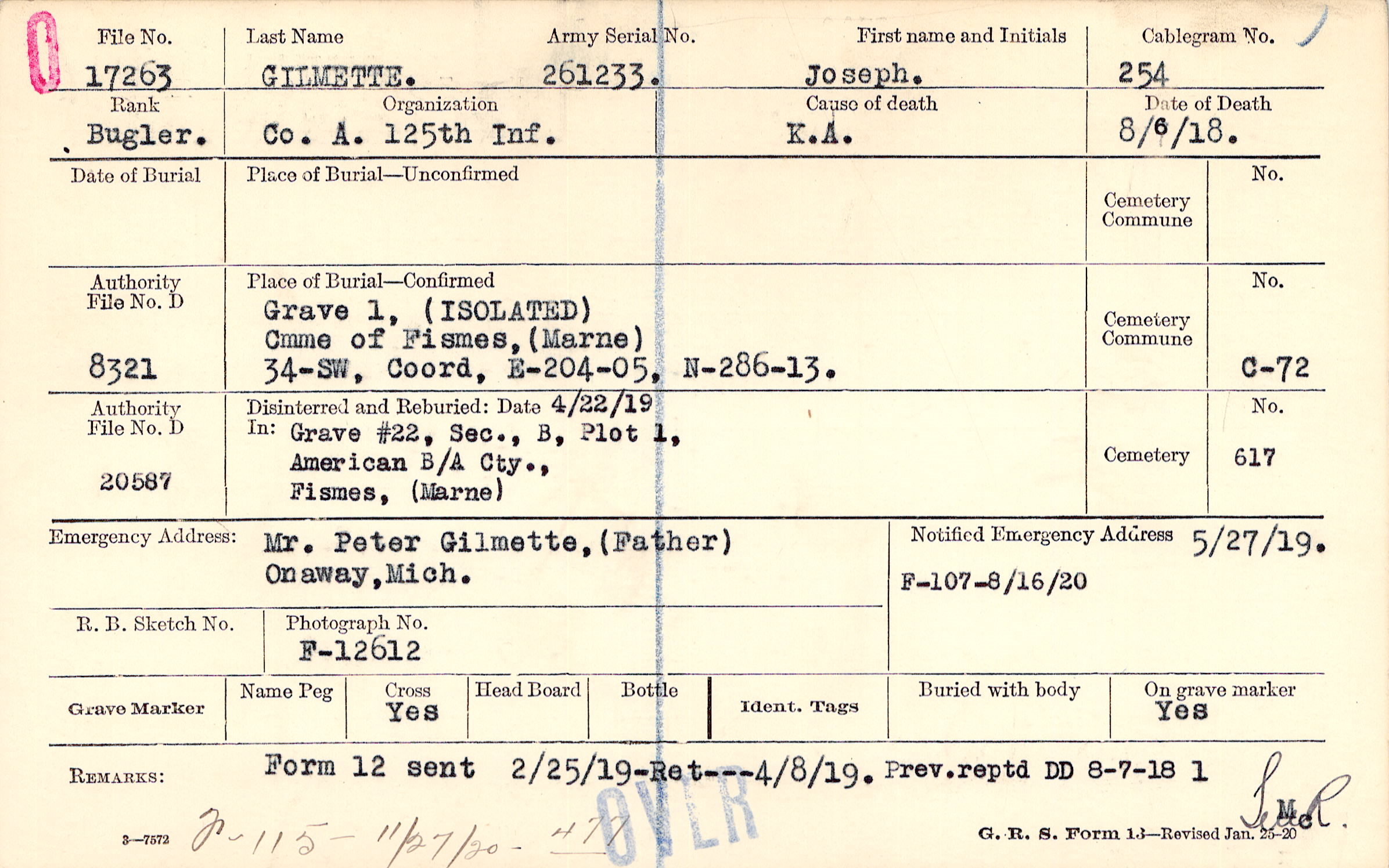 5/27/1919, Form 107: 8/16/1920