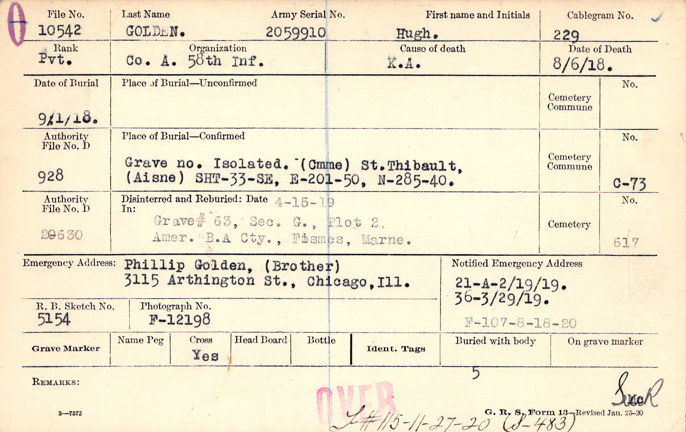 Phillip Golden, (Brother), 3115 Arthington St., Chicago, Ill.