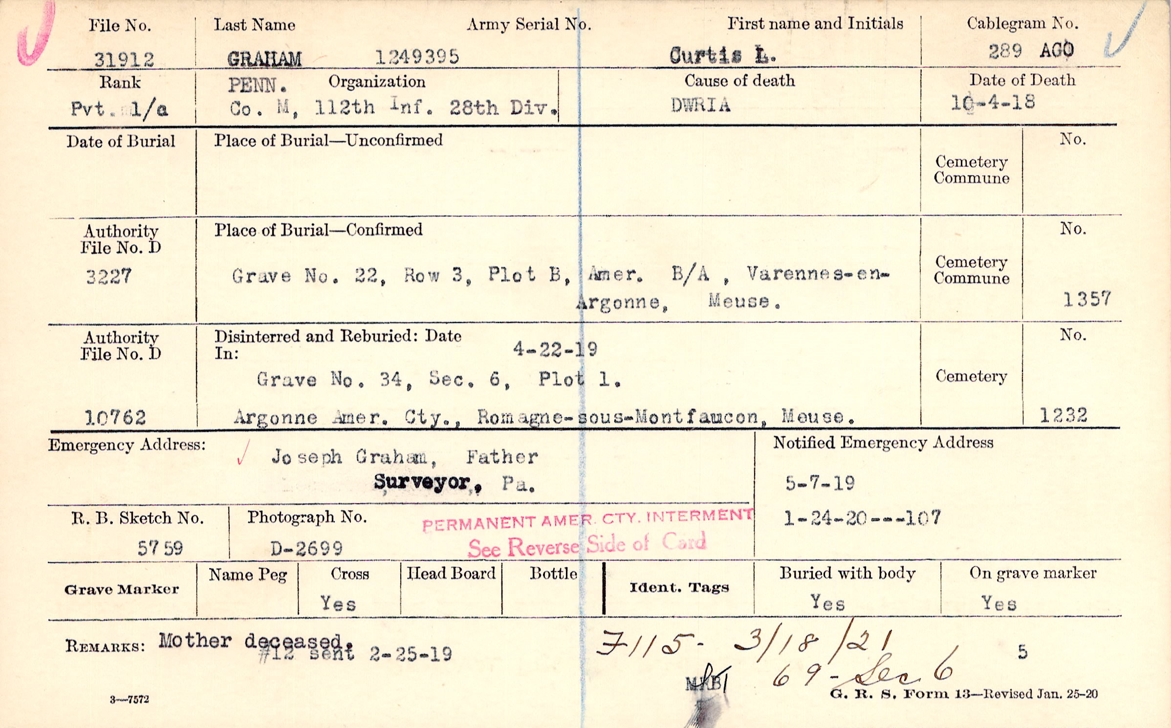 | Reburied (date): |