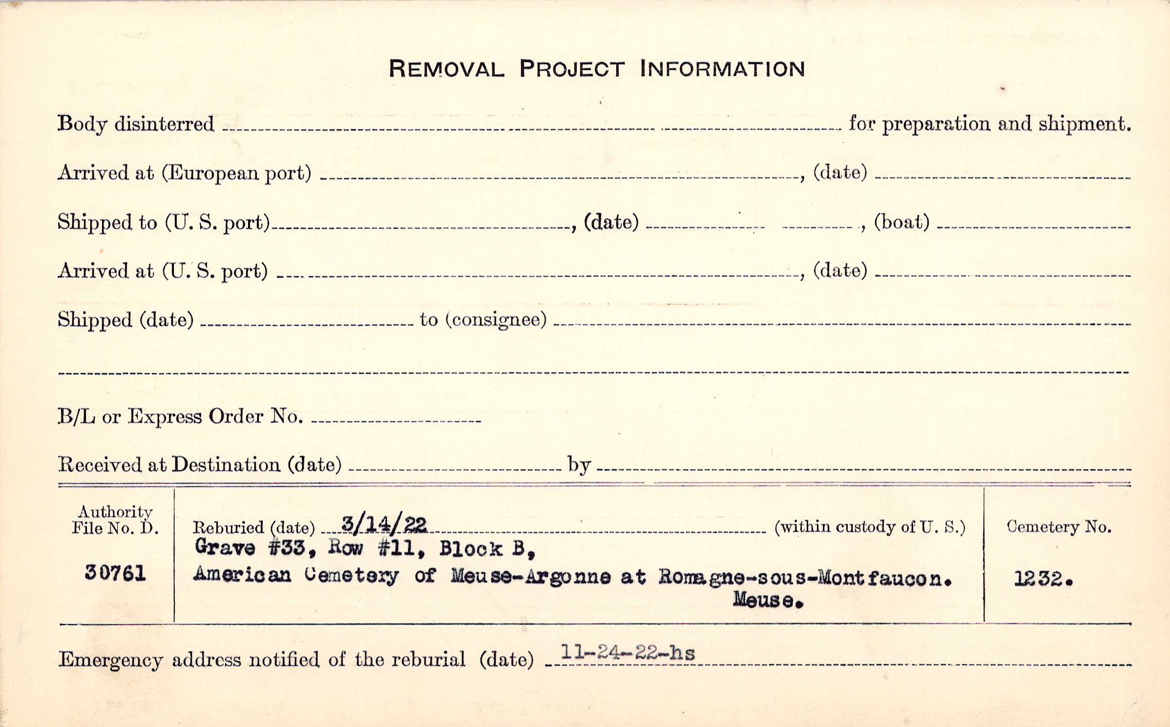 Grave 22, Row 3, Plot B, Amer. B/A, Varennes-en-Argonne, Meuse