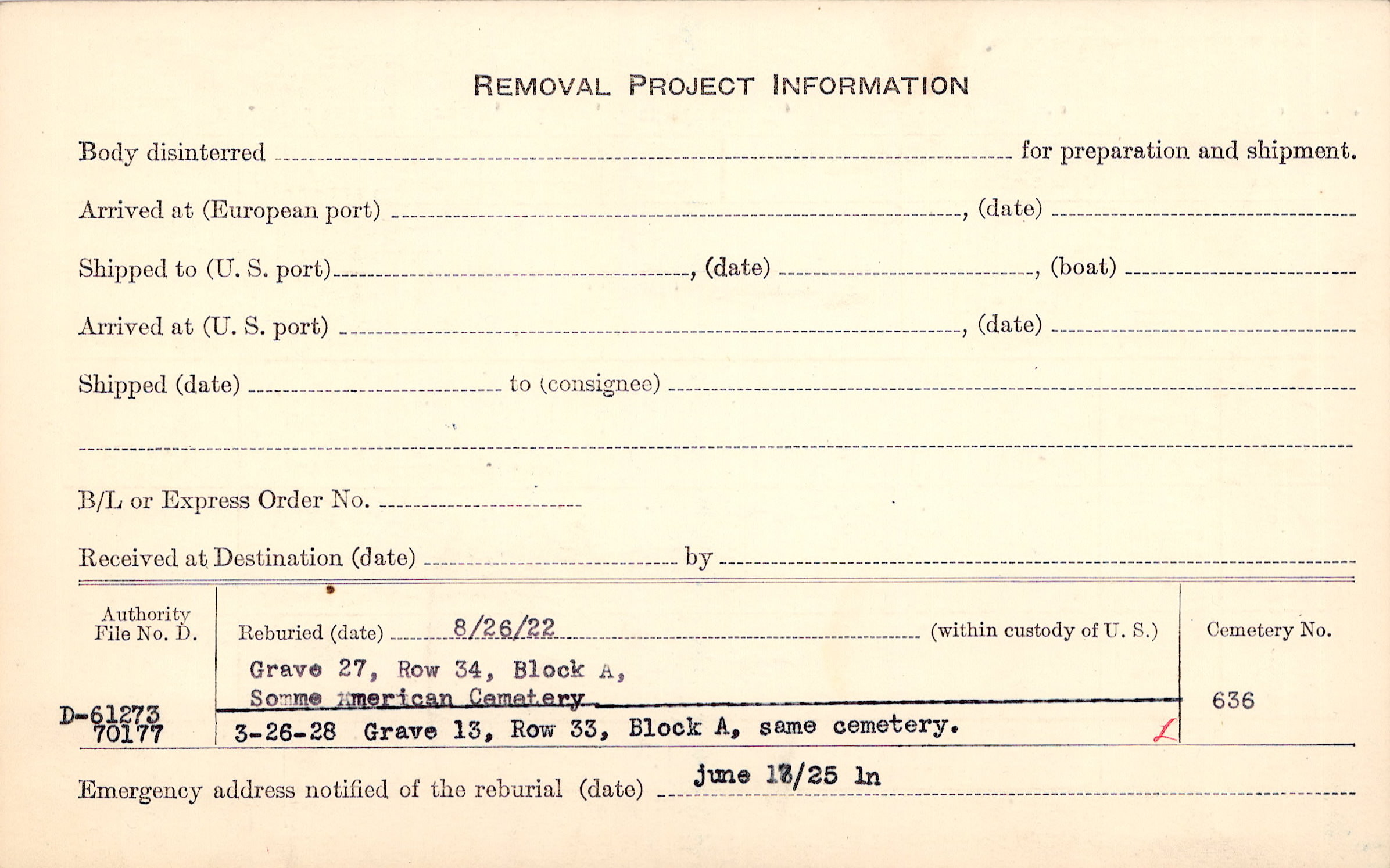 Prior Burial in Foreign Cemetery |