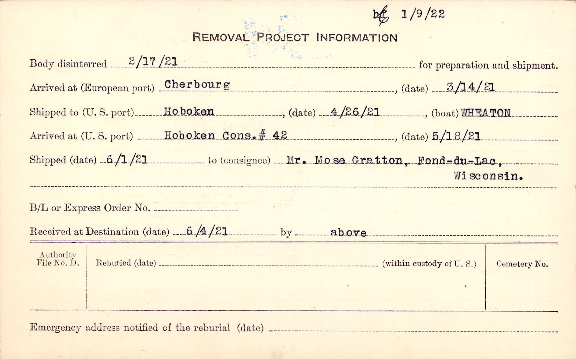 to Mr. Mose Gratton, Fond-du-Lac, Wisconsin