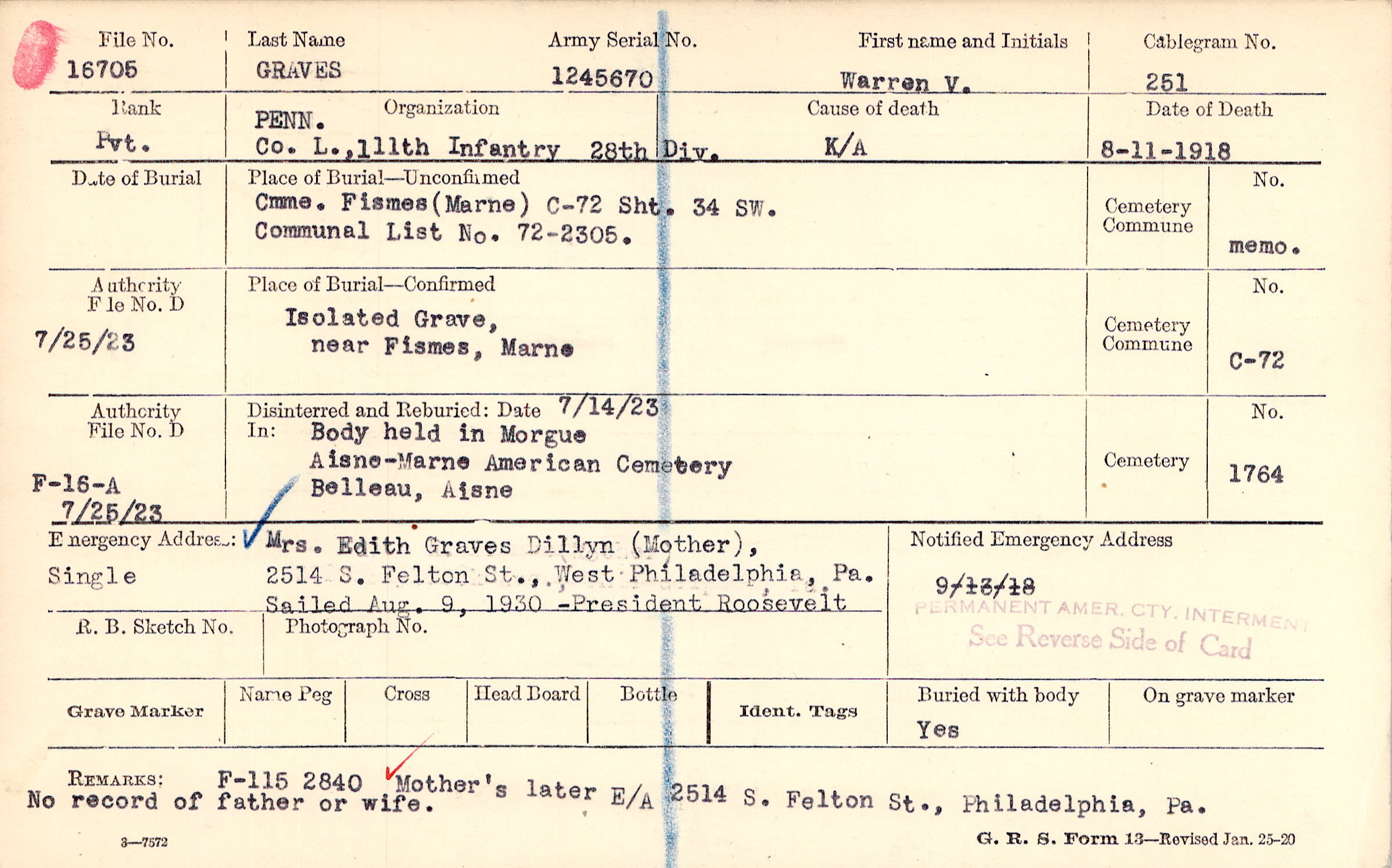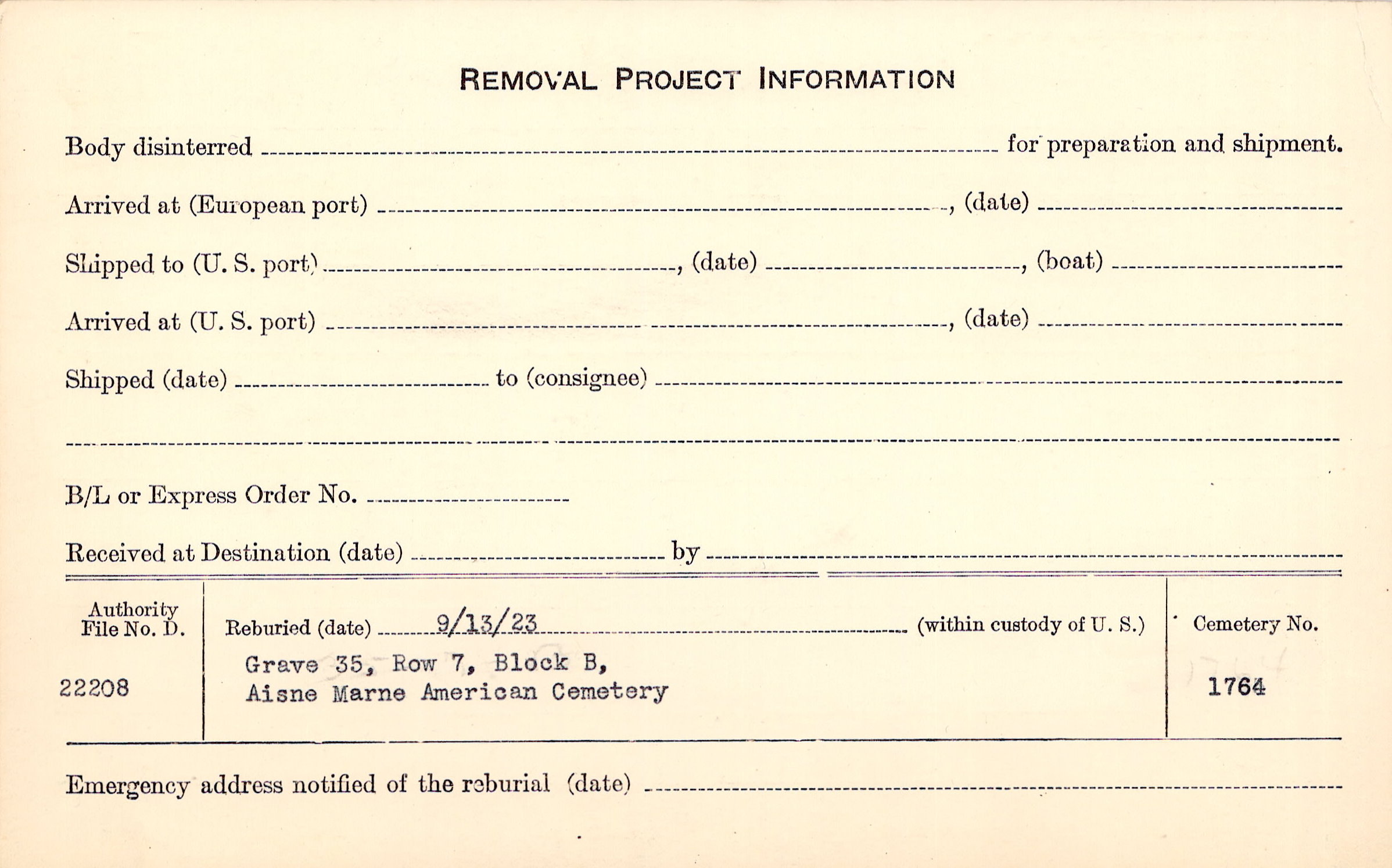 | Permanent Burial in Foreign Cemetery |