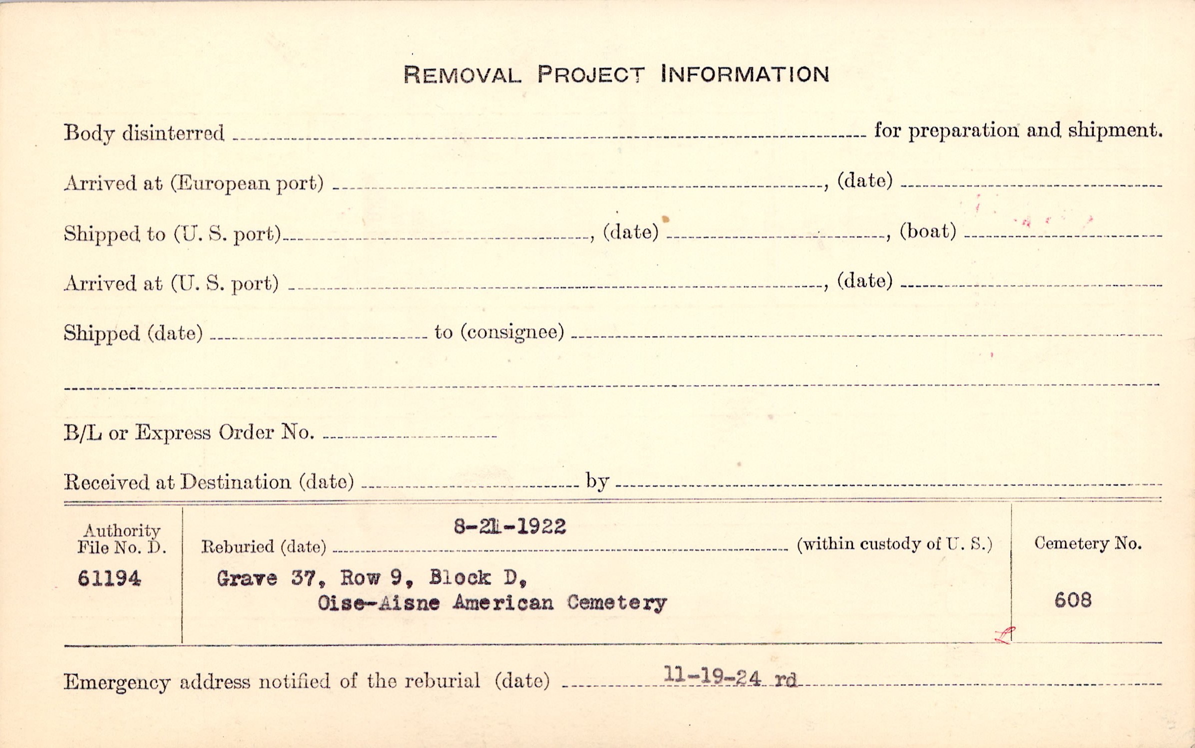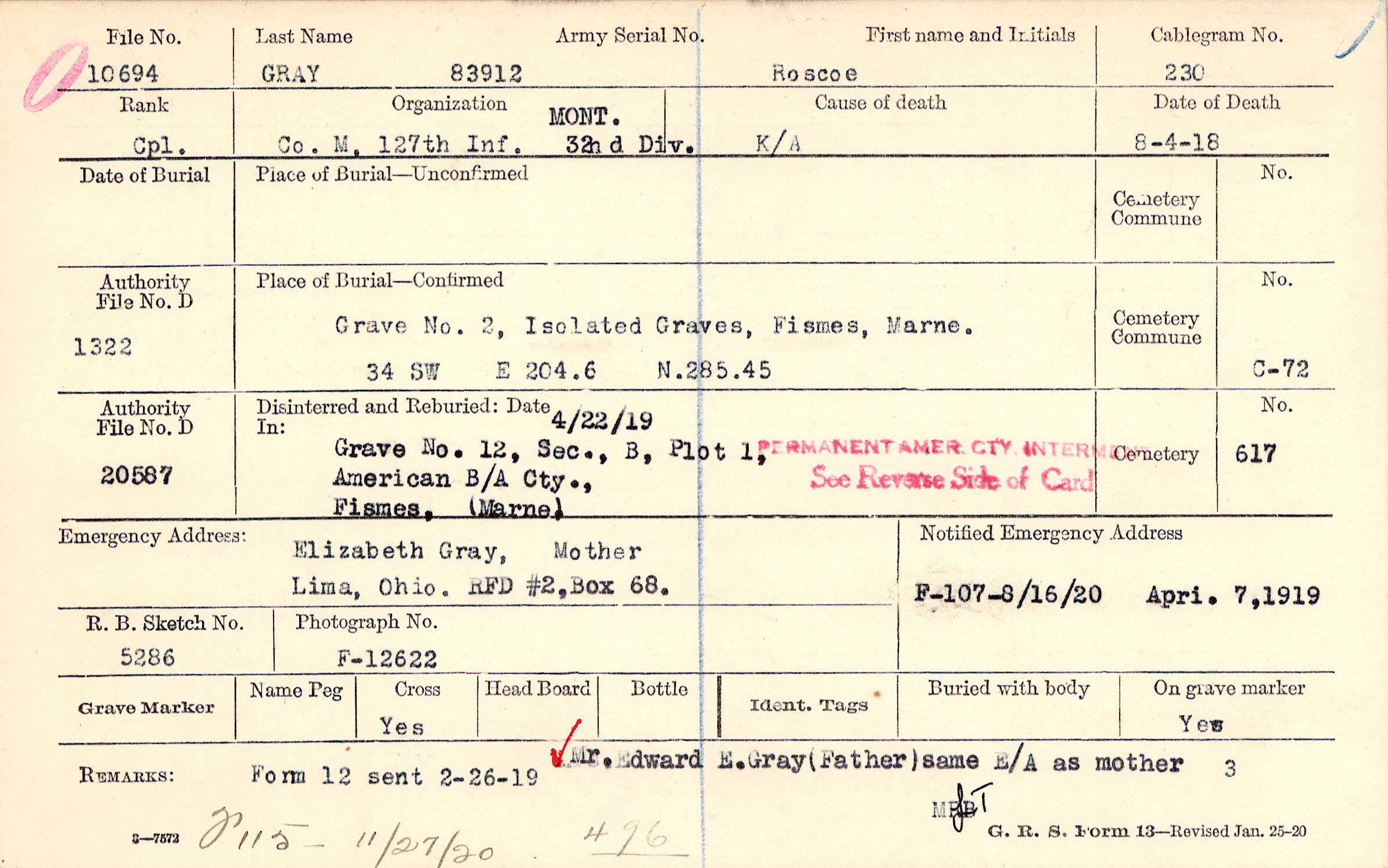 Grave 12, Section B, Plot 1, American B/A Cemetery, Fismes, Marne