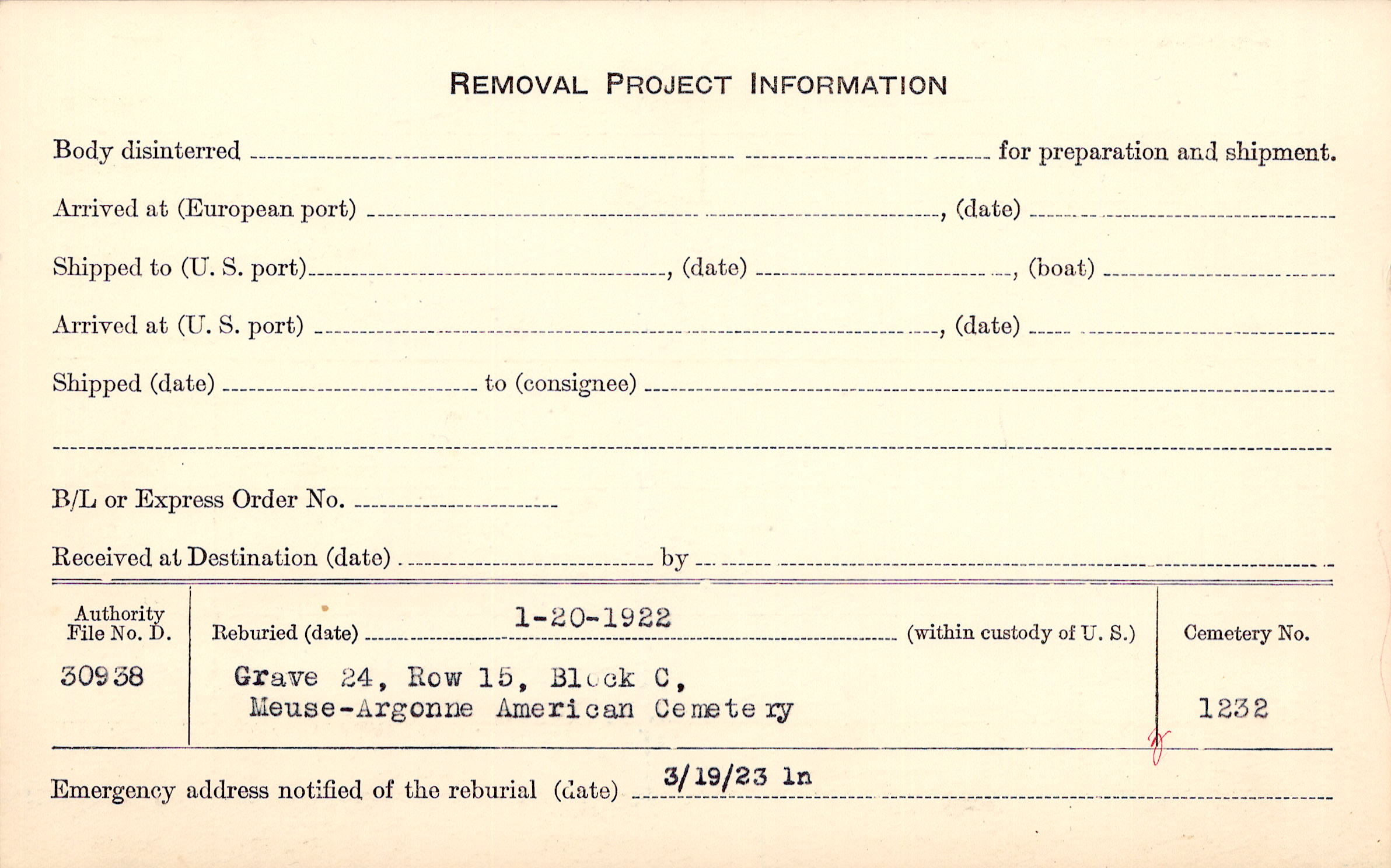 | Permanent Burial in Foreign Cemetery |