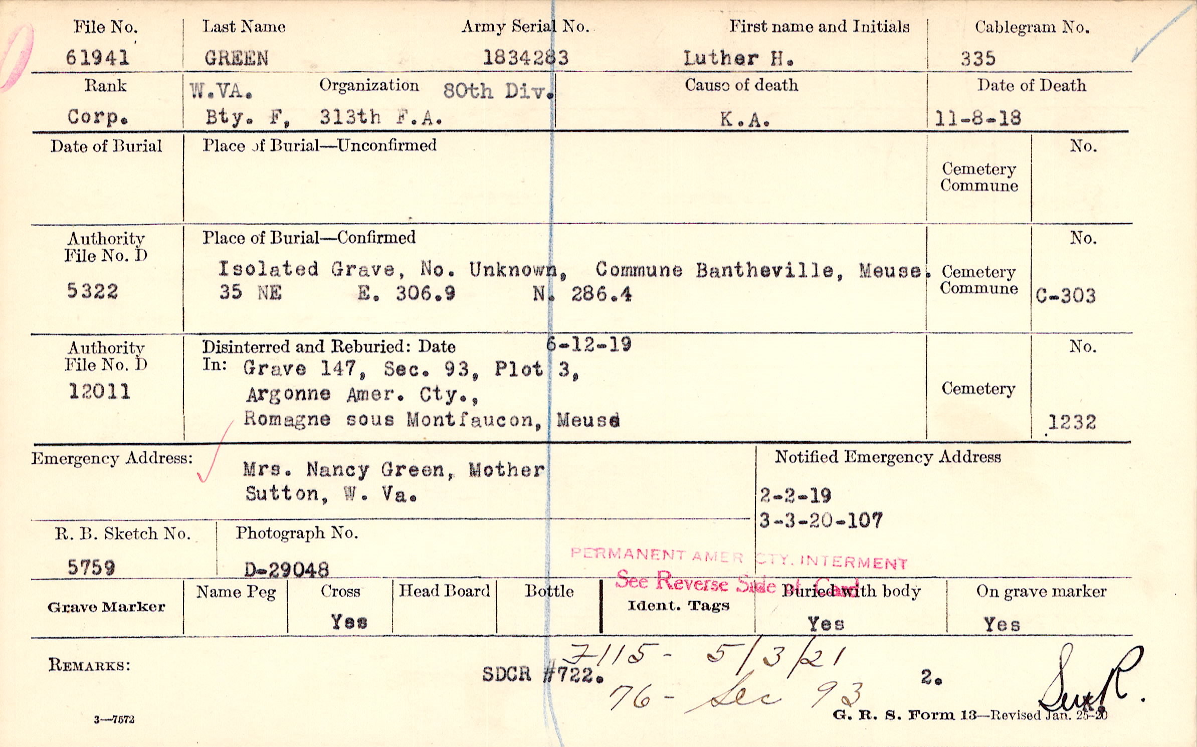 Mrs. Nancy Green (mother), Sutton, W. Va.