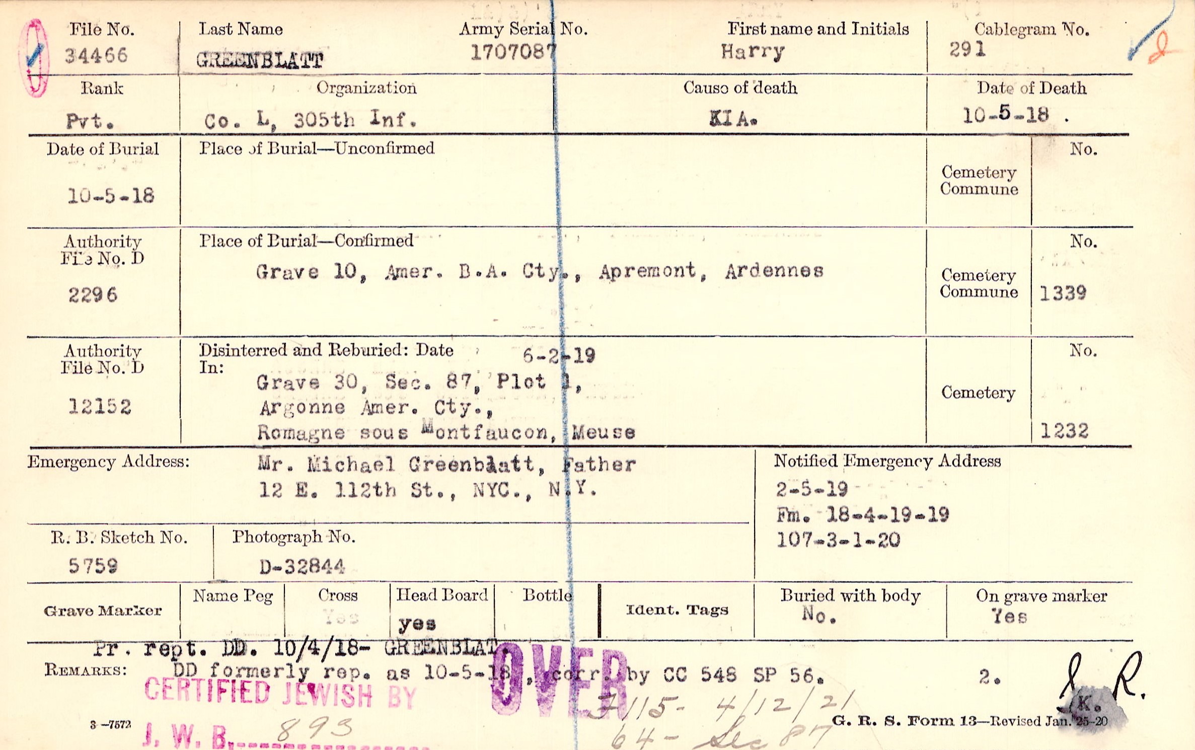 Grave 10, Amer. B/A Cty., Apremont, Ardennes