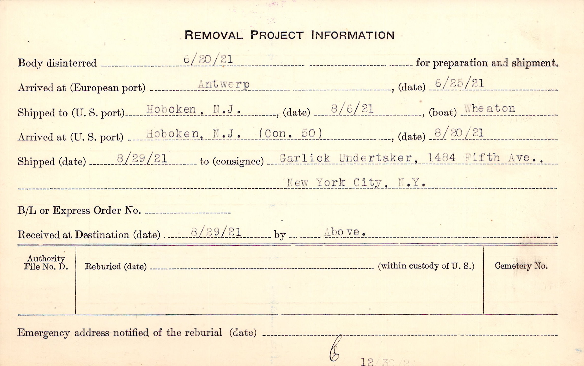 to Garlick Undertaker, 1484 Fifth Ave., New York City, N. Y.