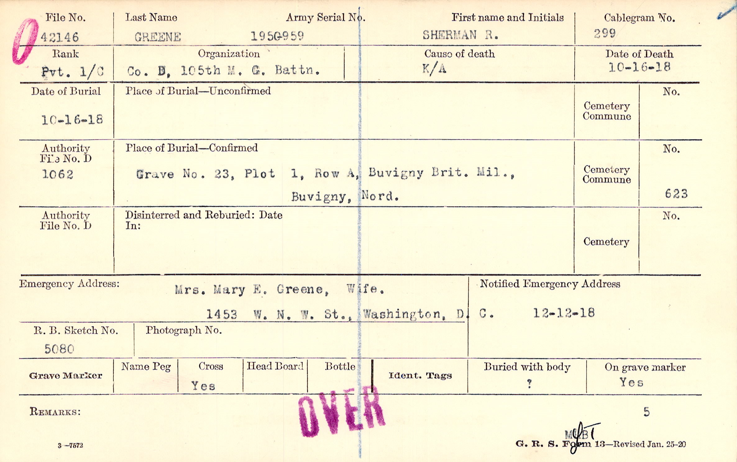 Mrs. Mary E. Greene, Wife, 1453 W. N. W. St., Washington, D. C.