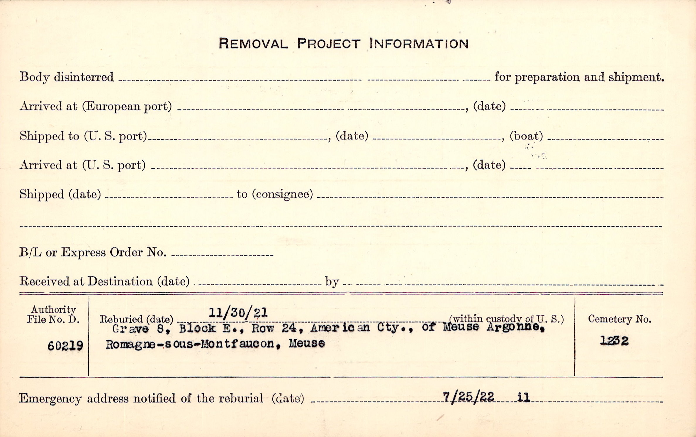 | Permanent Burial in Foreign Cemetery |