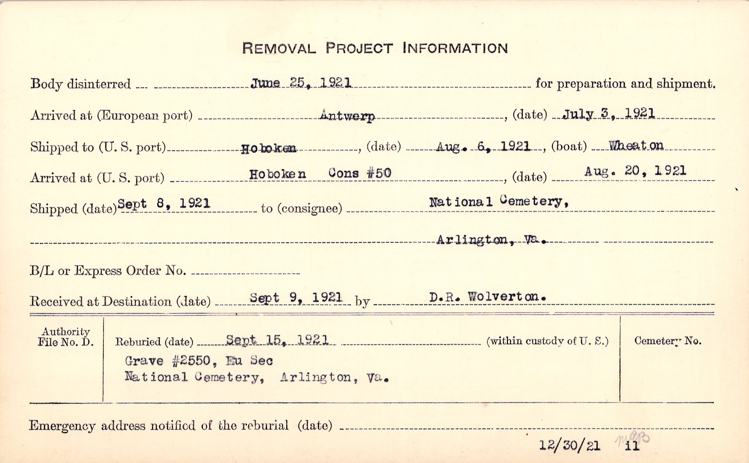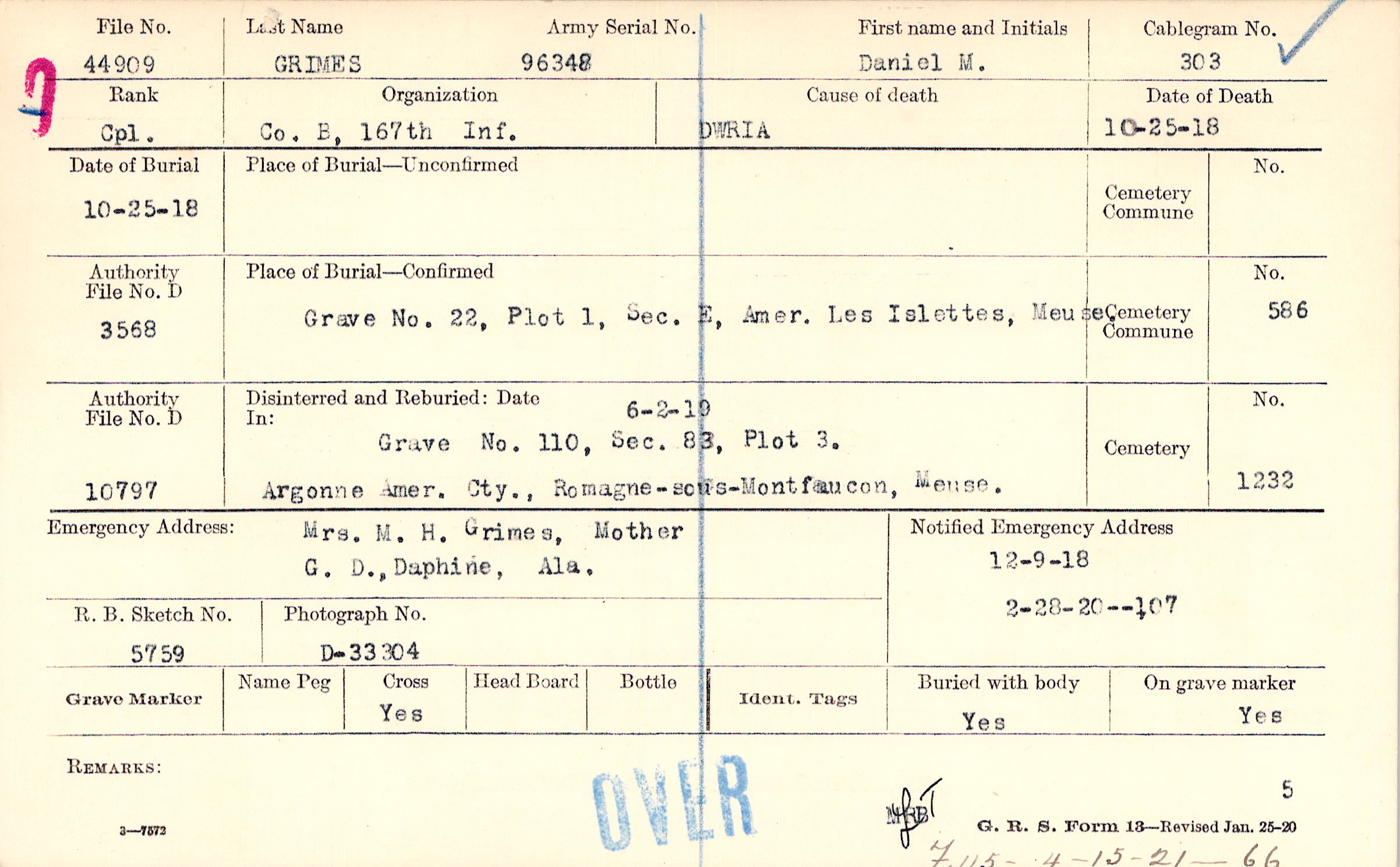 Grave 110, Section 83, Plot 3, Argonne American Cemetery, Romagne-sous-Montfaucon, Meuse