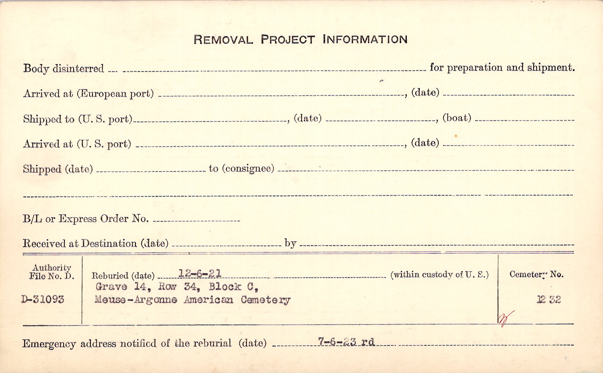| Permanent Burial in Foreign Cemetery |