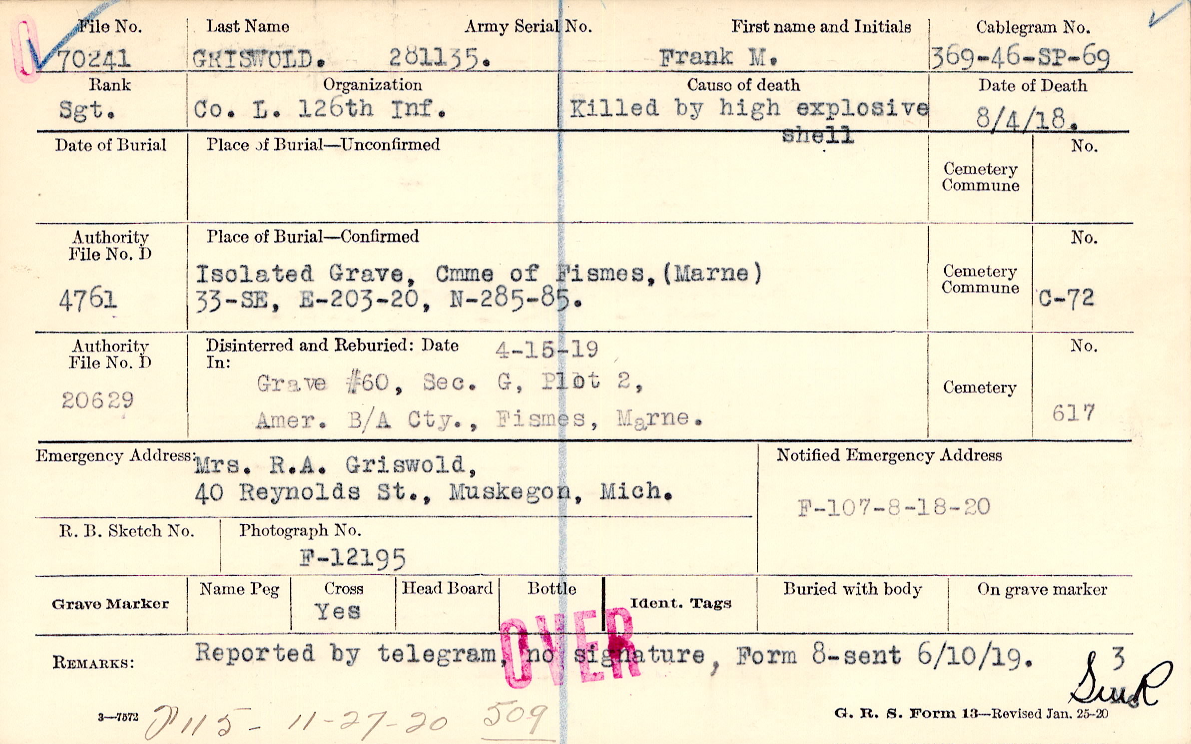 Reported by telegram, no signature, Form 8-sent 6/10/19., F115 - 11-27-20 509