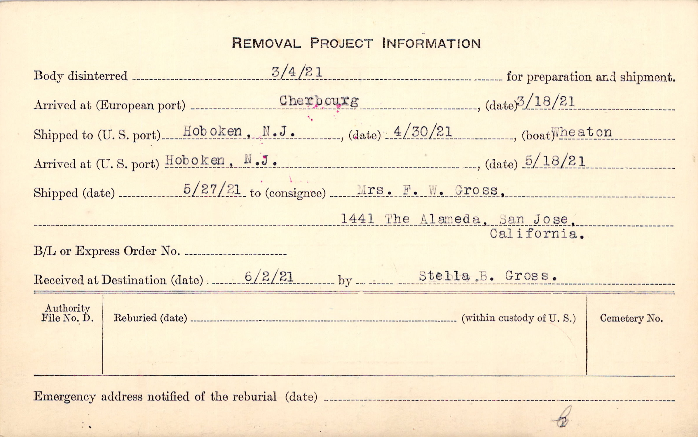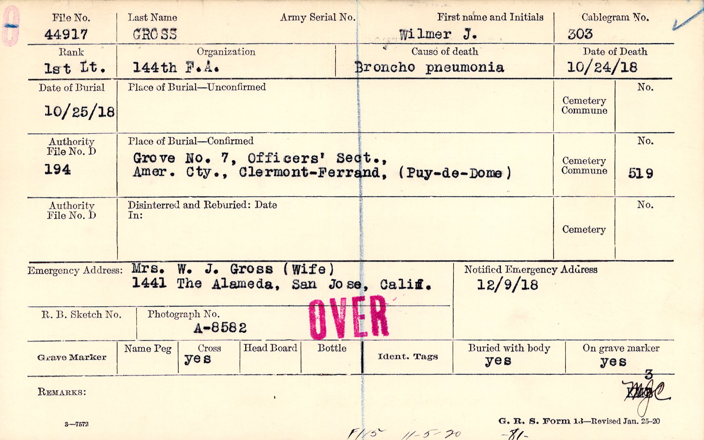 Mrs. W. J. Gross (Wife), 1441 The Alameda, San Jose, Calif.