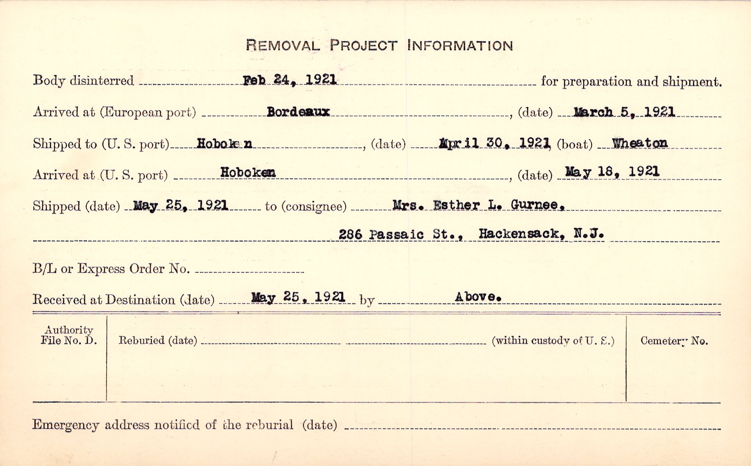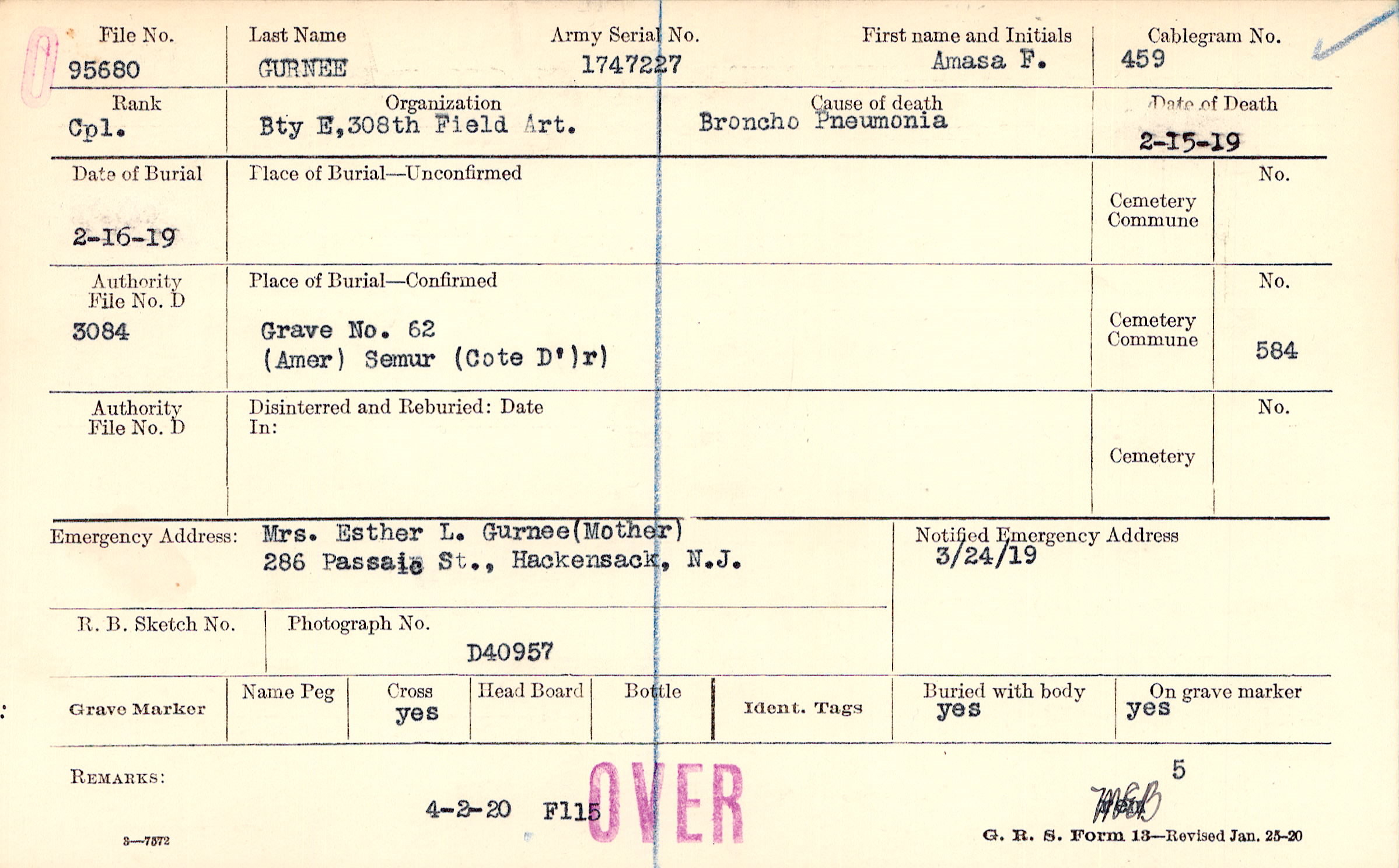 Mrs. Esther L. Gurnee (Mother), 286 Passaic St., Hackensack, N. J.