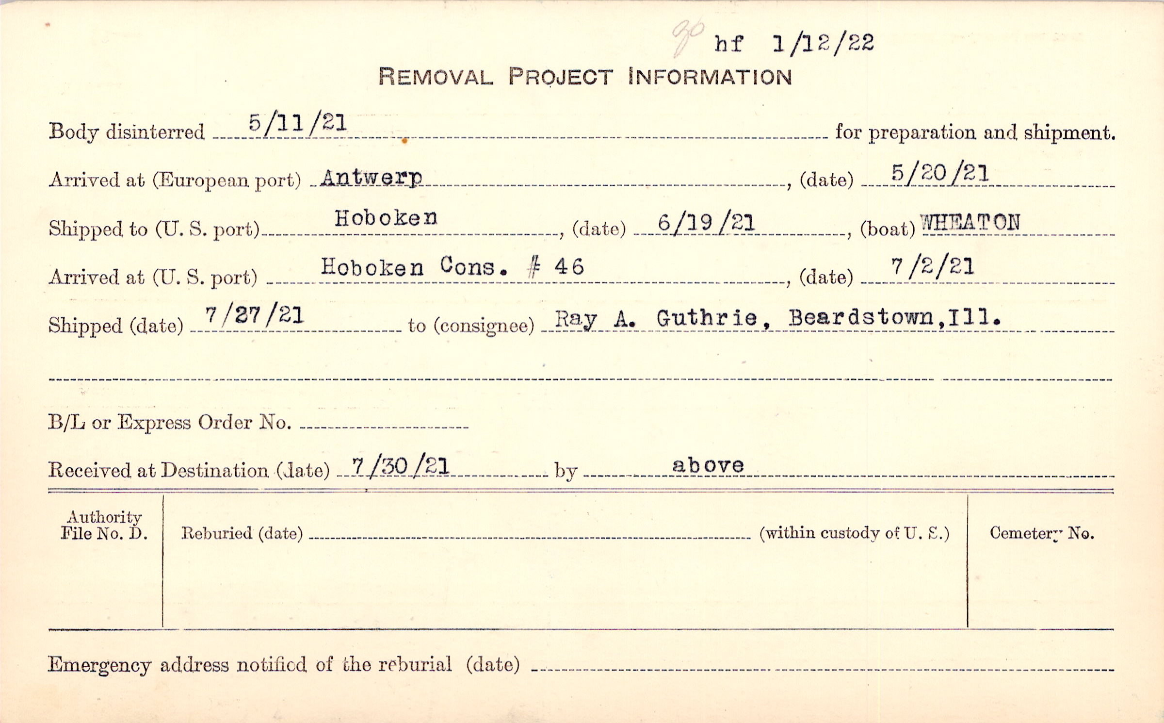 Ray A. Guthrie, father, 511 E. 6th St., Beardstown, Illinois