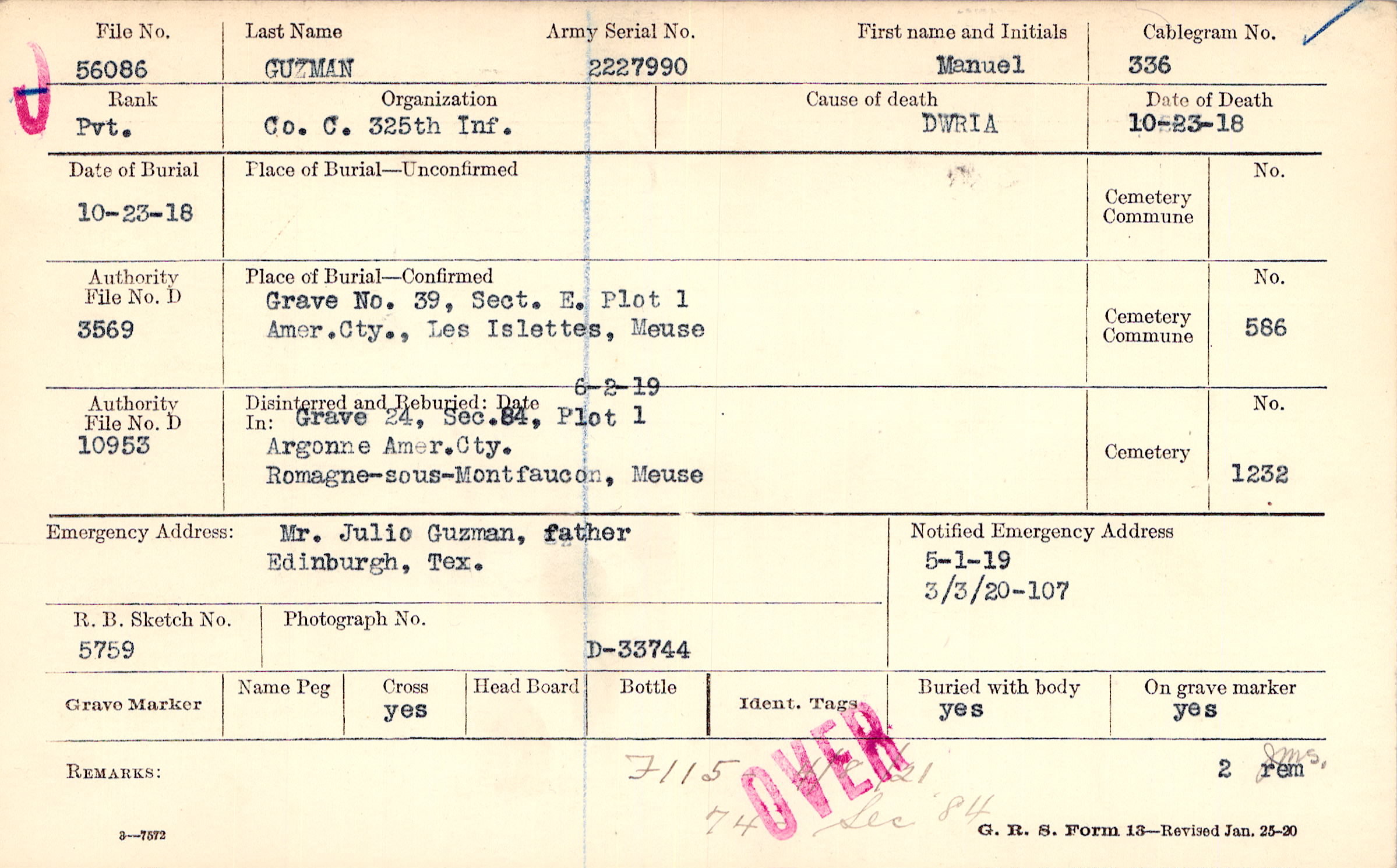 Grave 39, Sect. E, Plot 1, Amer. Cty., Les Islettes, Meuse
