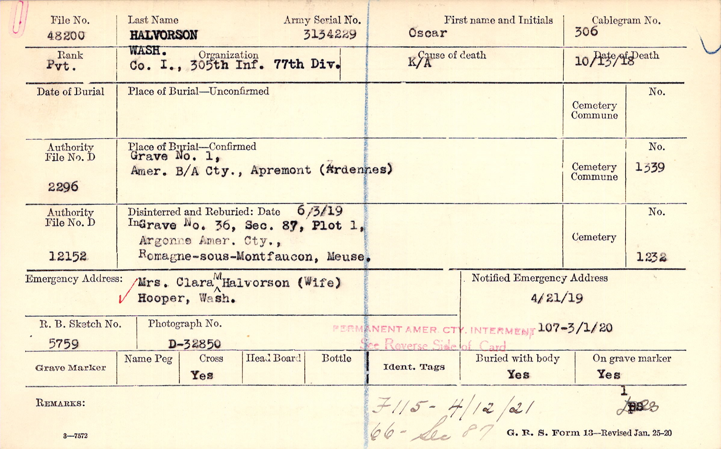 Grave 1, Amer. B/A Cty., Apremont, Ardennes