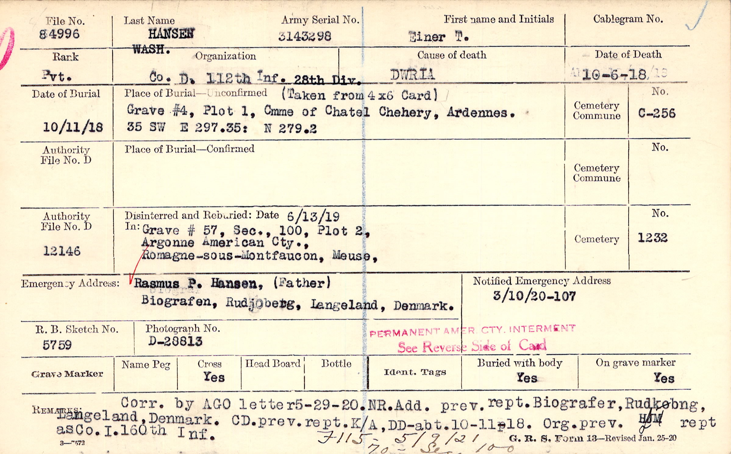 Grave #4, Plot 1, Cmme of Chatel Chehery, Ardennes, 35 SW